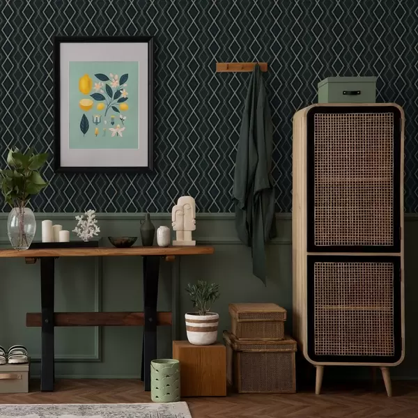 Tapete Dunkler blaugrüner Hintergrund mit sich wiederholendem Rautenmuster Nr. a00975v1