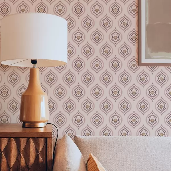 Tapete Rhythmisches Tropfenmotiv mit einer Blume auf pudrigem Hintergrund Nr. a00977