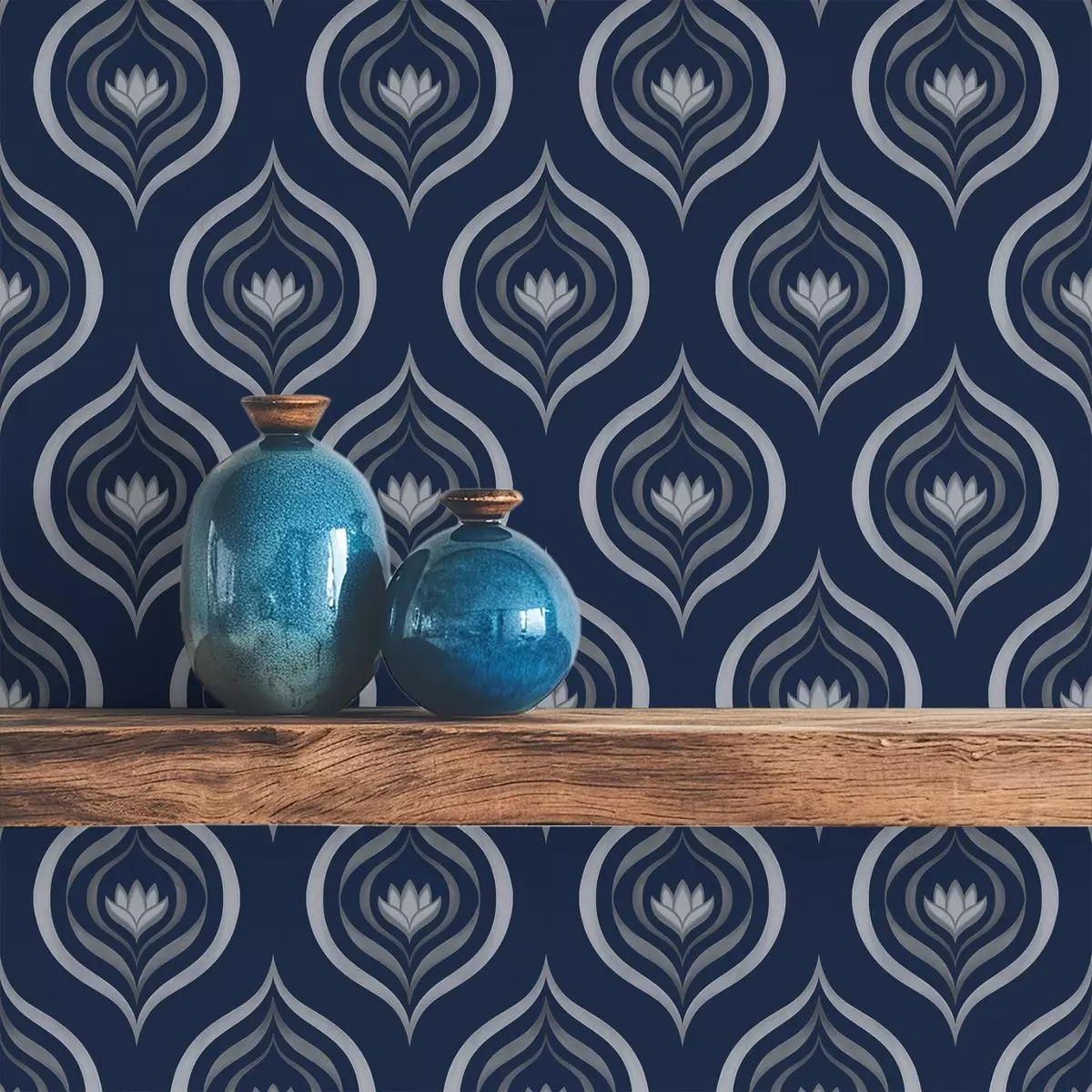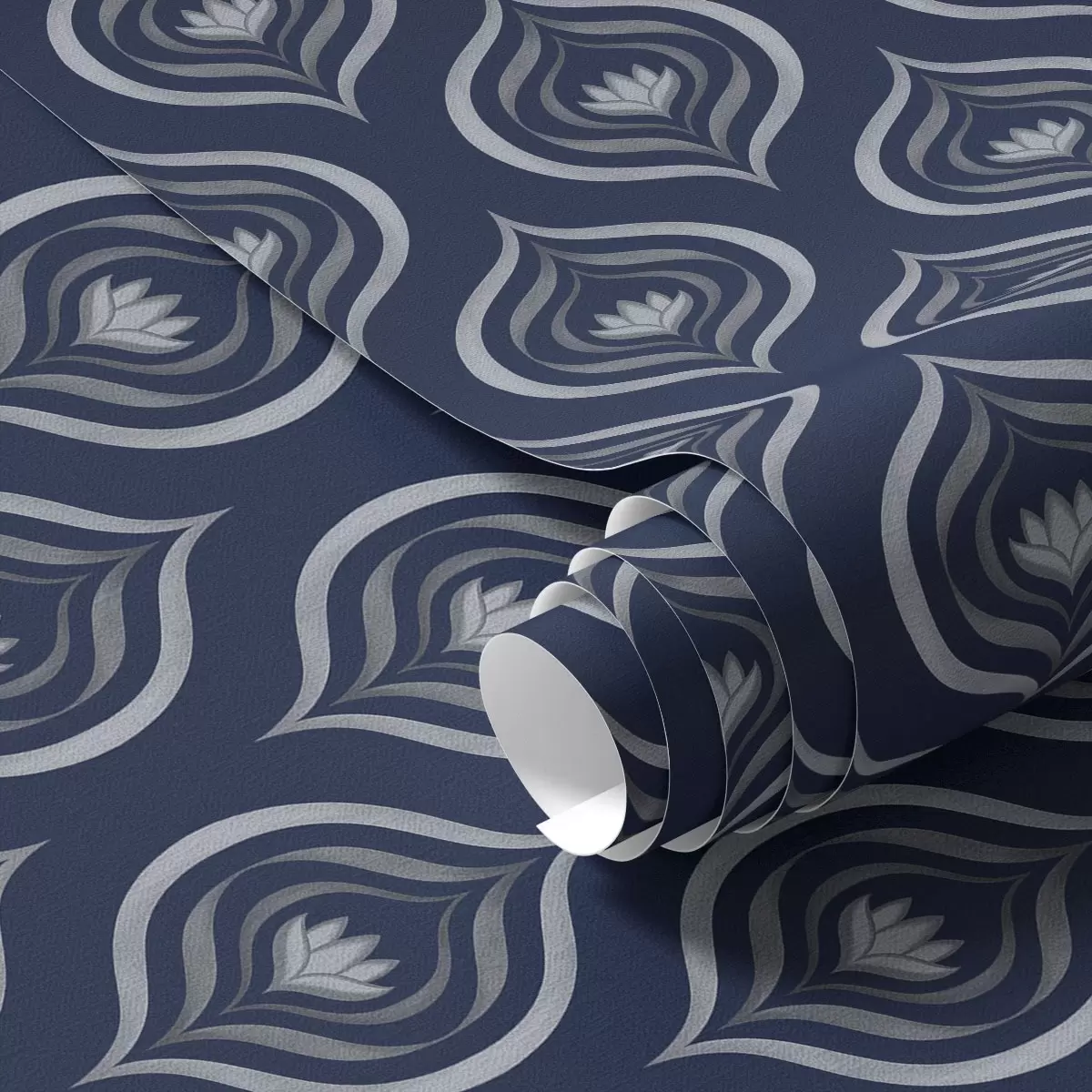 Tapete Kontrastierende Tropfenmotive mit einer Blume auf dunkelblauem Hintergrund Nr. a00977v1
