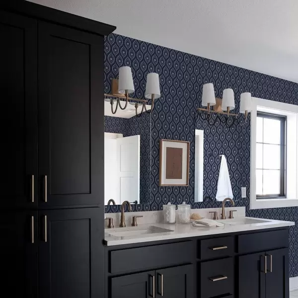 Tapete Kontrastierende Tropfenmotive mit einer Blume auf dunkelblauem Hintergrund Nr. a00977v1