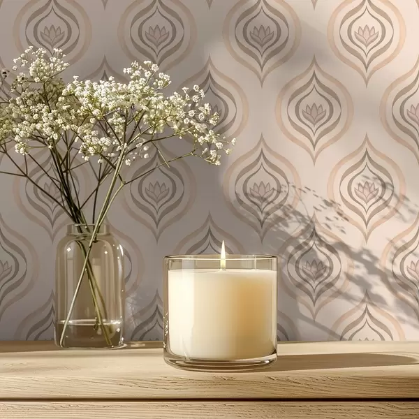Tapete Pudrige Tropfenmotive mit einer Blume auf warmem Hintergrund Nr. a00977v2