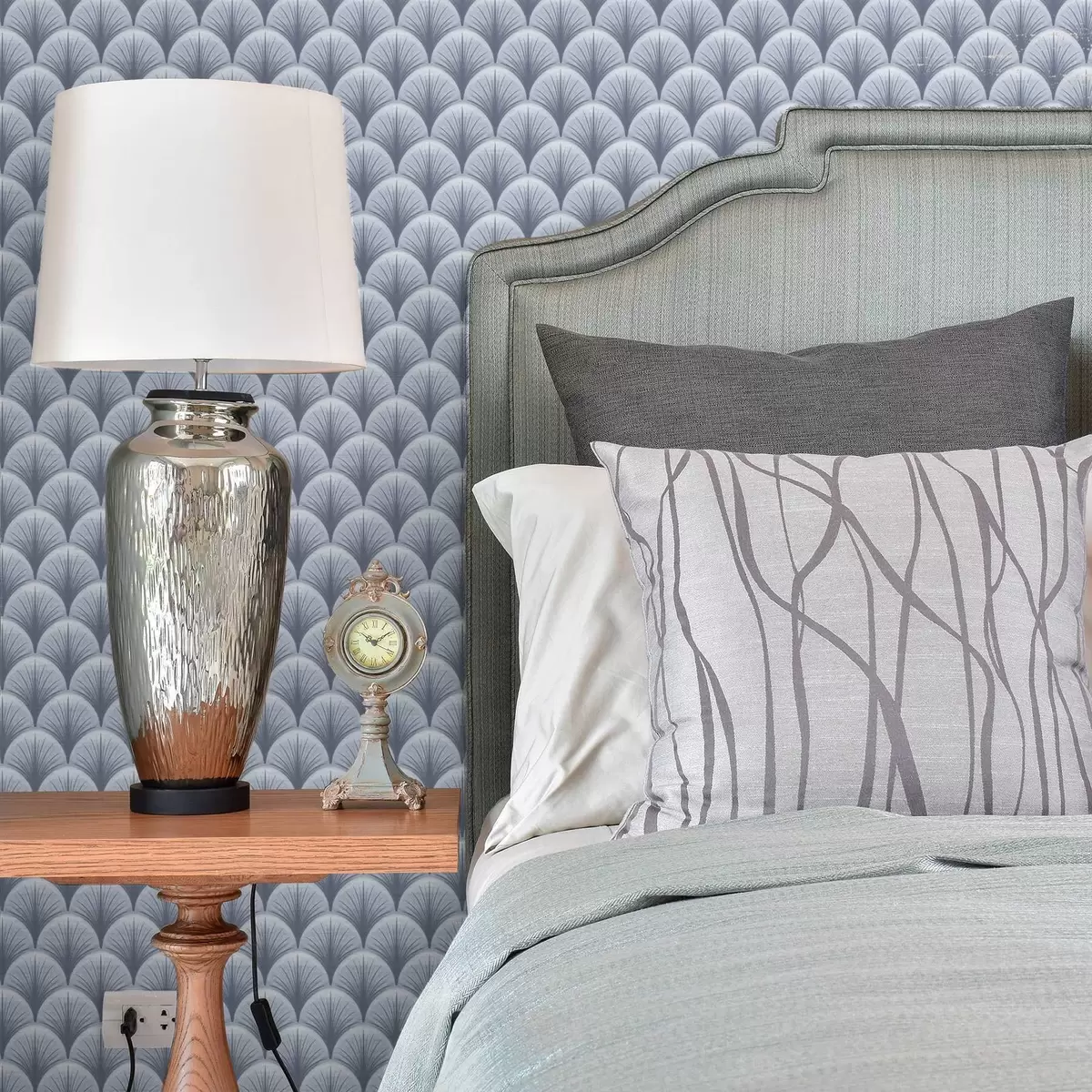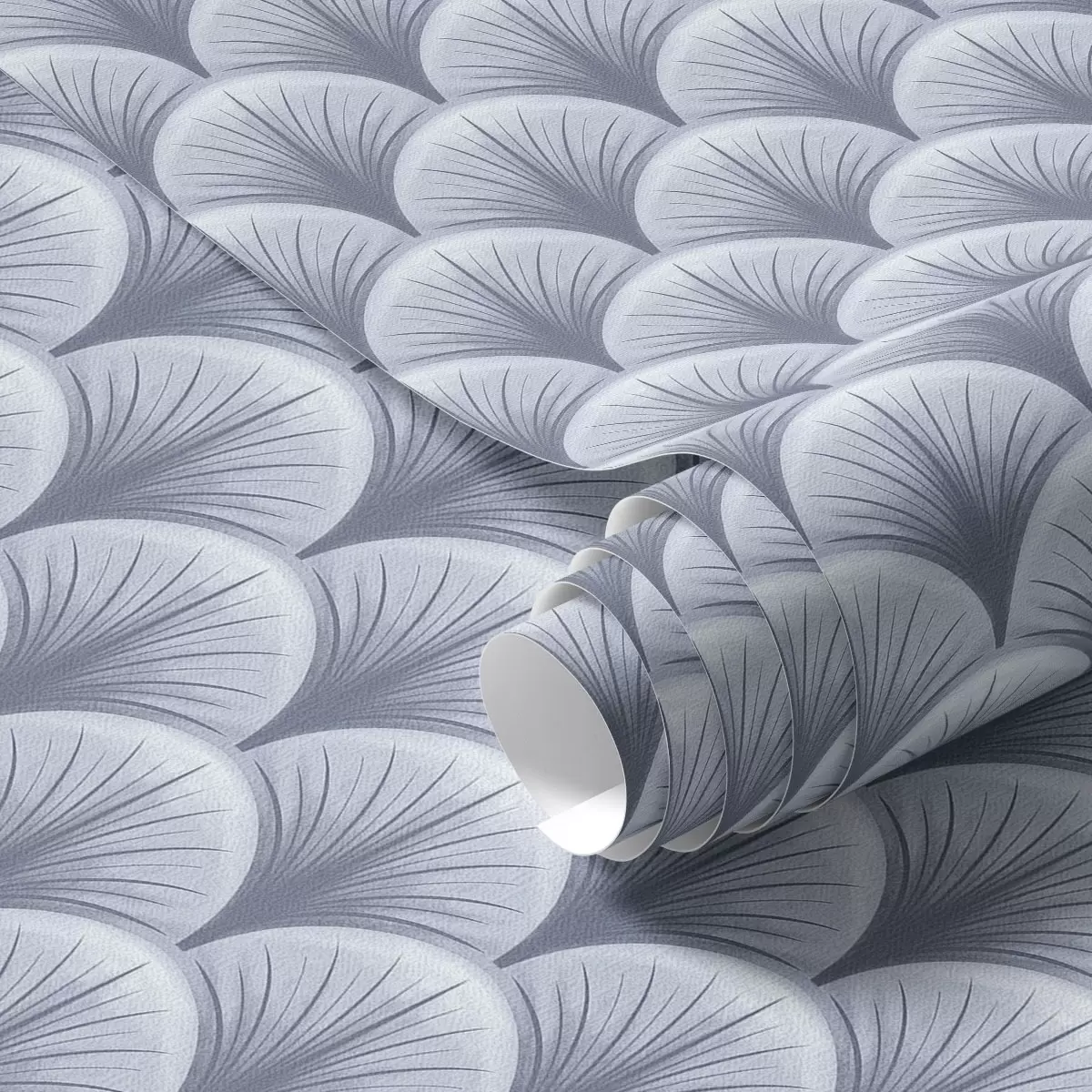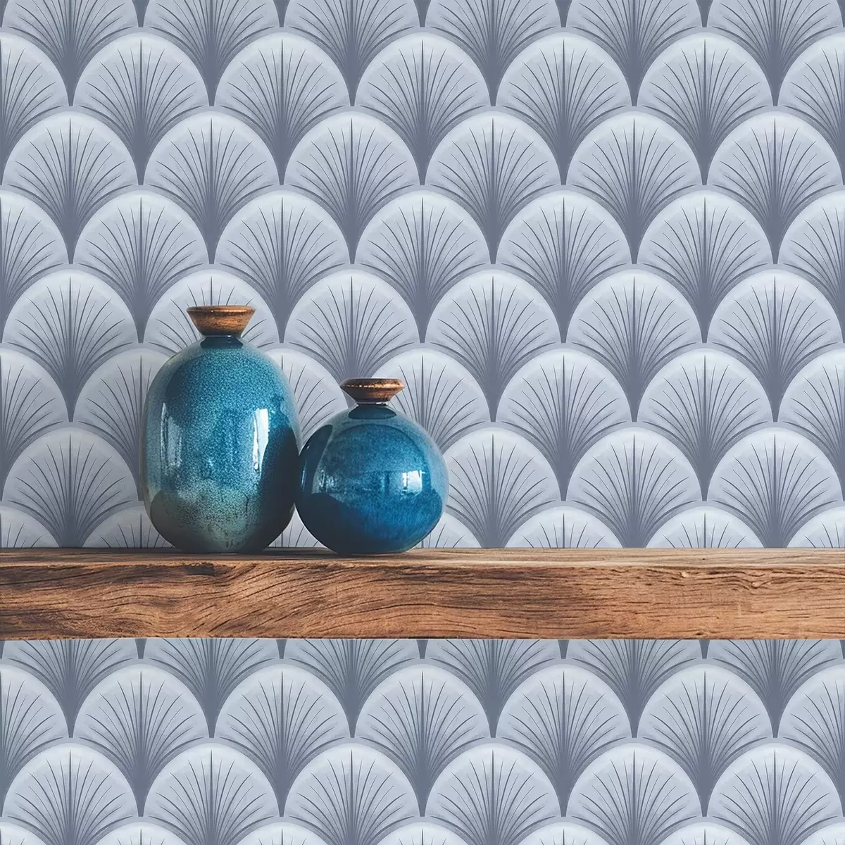 Tapete Blaue Fächerbögen mit Strahlen auf hellblauem Hintergrund Nr. a00978v1