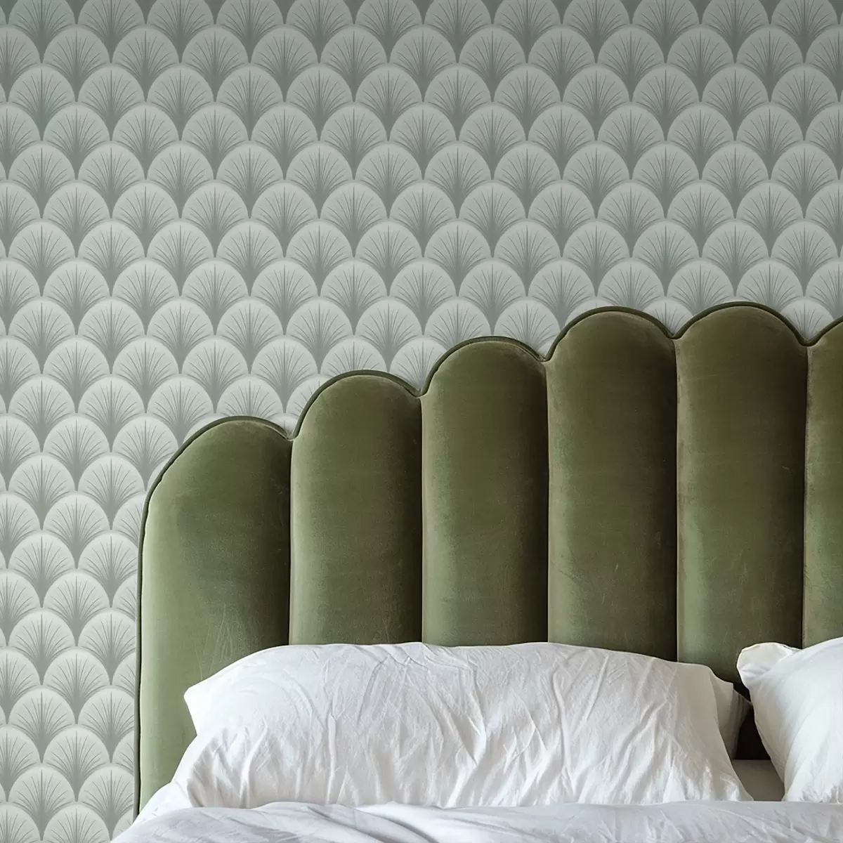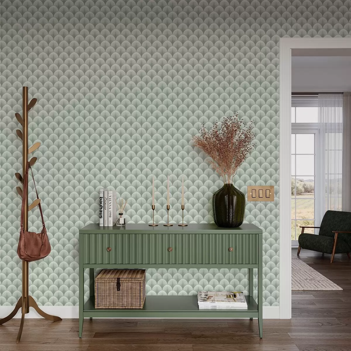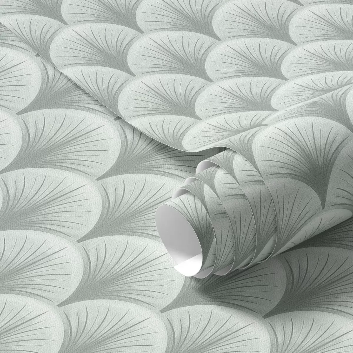 Tapete Minzfarbene Fächerbögen mit Strahlen auf einem sanften grünlichen Hintergrund Nr. a00978v2
