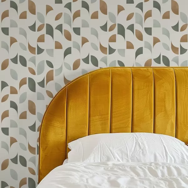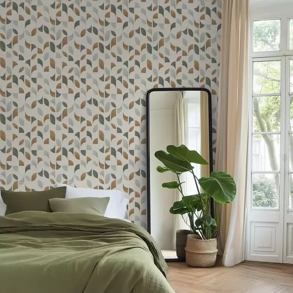 Tapete Abstrakte Halbkreise und Blätter in Grün und Terrakotta Nr. a00985