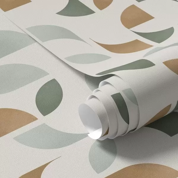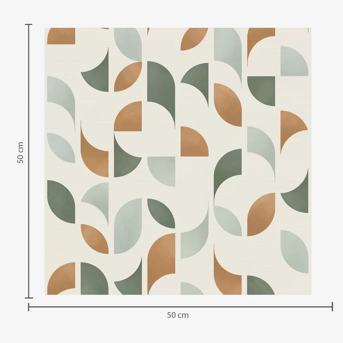 Tapete Abstrakte Halbkreise und Blätter in Grün und Terrakotta Nr. a00985