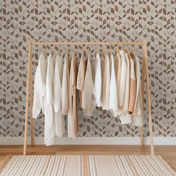 Tapete Rhythmus aus Halbkreisen und Blättern in warmen Karamellbrauntönen Nr. a00986v1