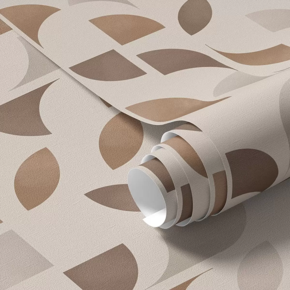 Tapete Rhythmus aus Halbkreisen und Blättern in warmen Karamellbrauntönen Nr. a00986v1