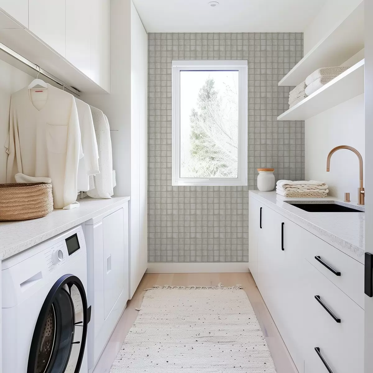 Tapete Imitation von quadratischen Fliesen in einer sanften grau-grünen Farbpalette Nr. a00988