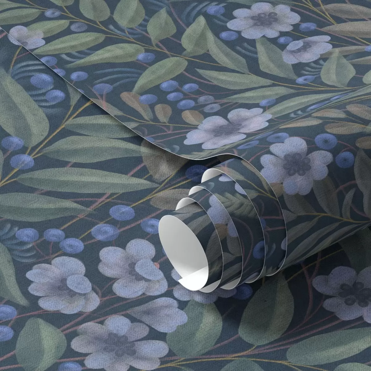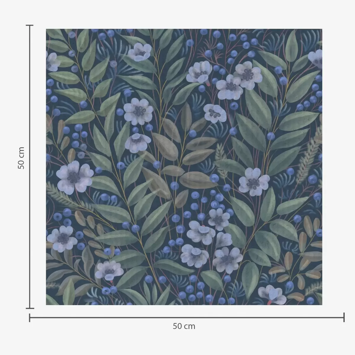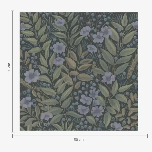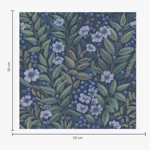 Tapete Mitternachtsblaue Beeren und weiße Blüten in dichtem Laub Nr. a00994