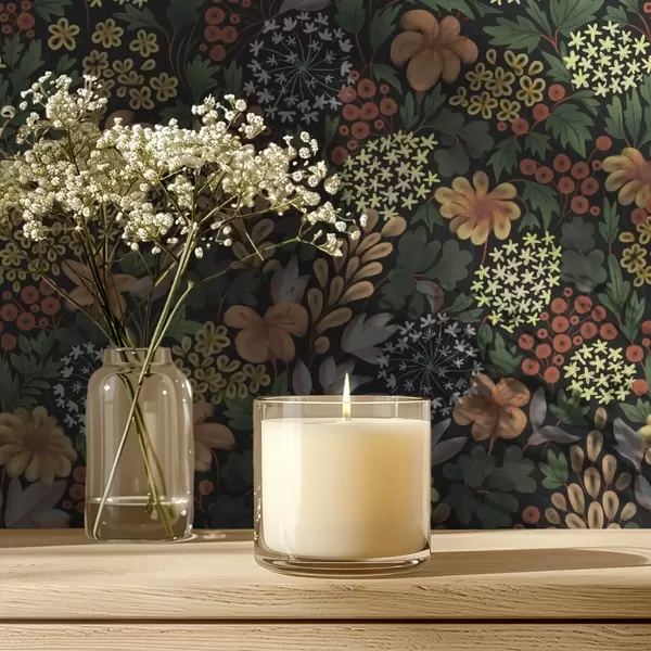 Tapete Warmer Nachtgarten mit gelben Blumen und üppigem Laub Nr. a00996v1