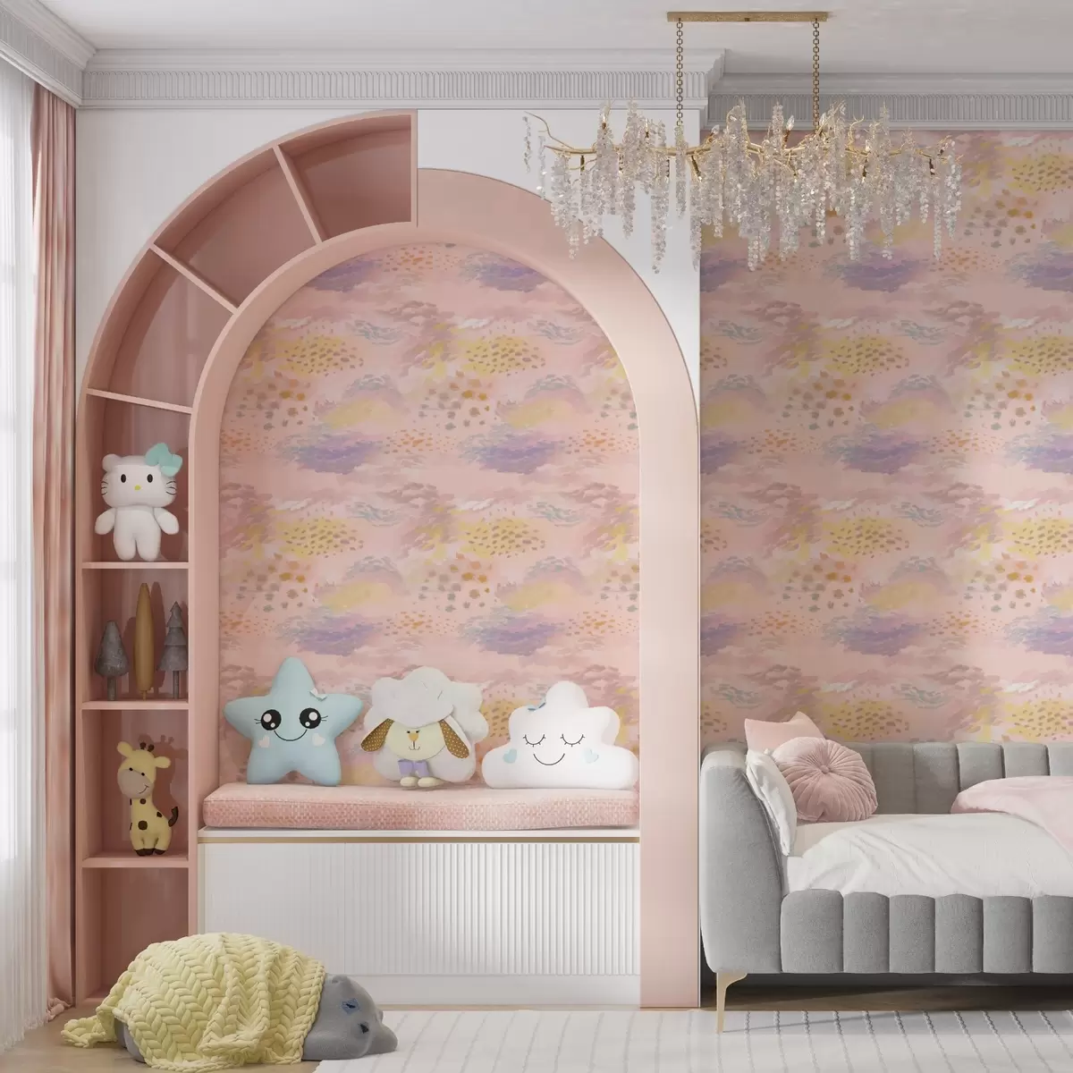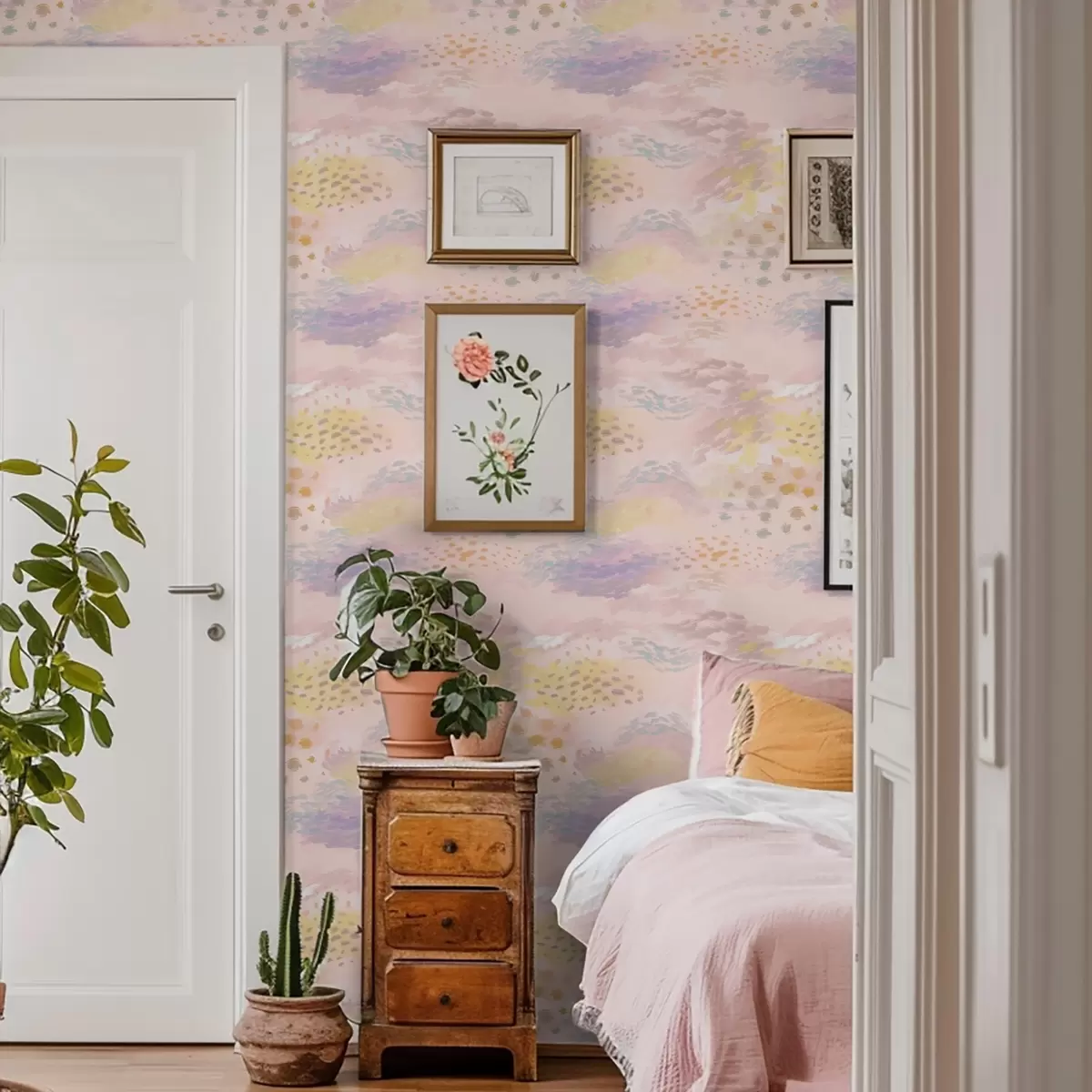 Tapete Pastellrosa Abstraktion mit weichen Pinselstrichen Nr. a00999v2