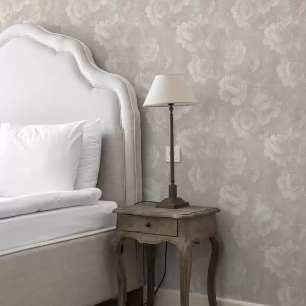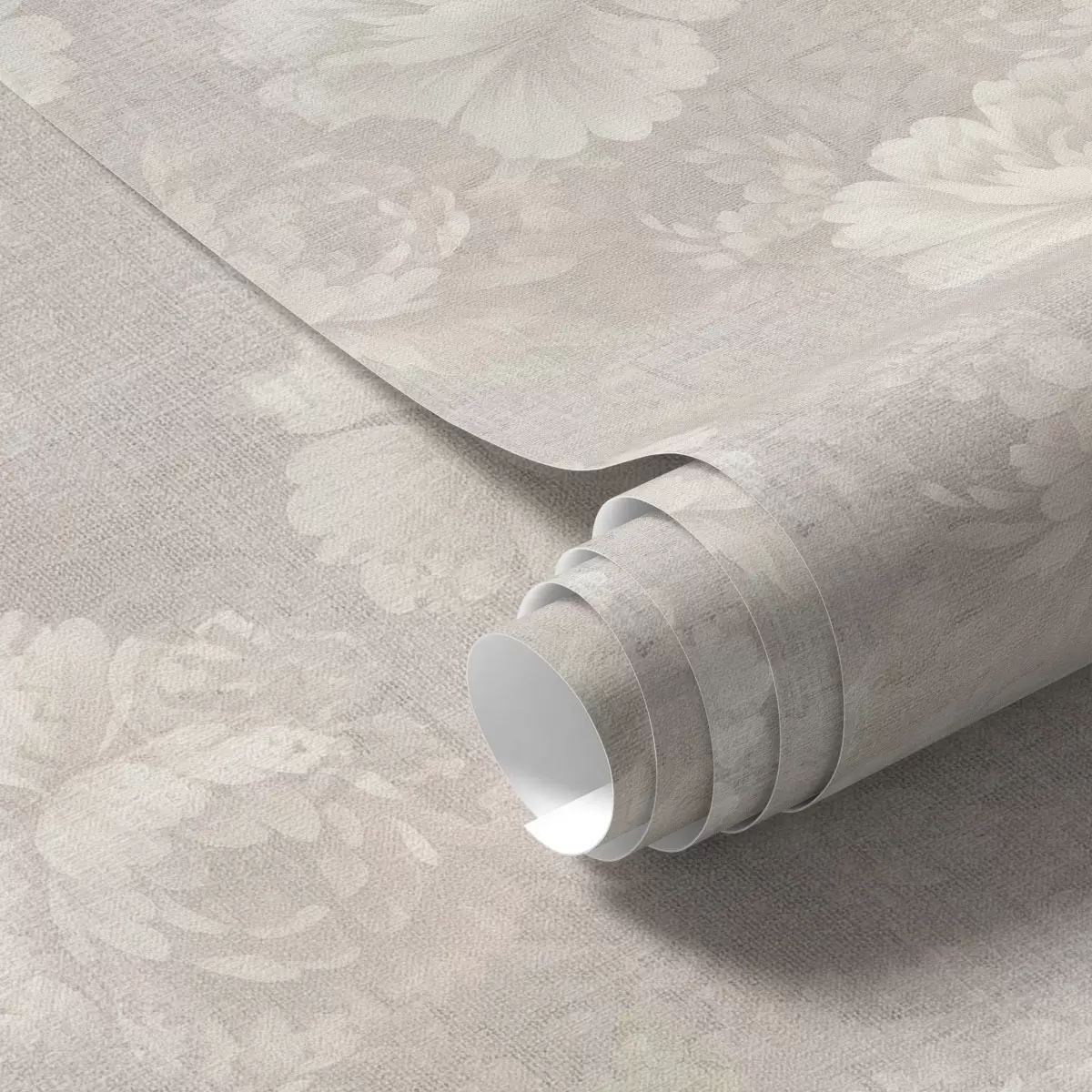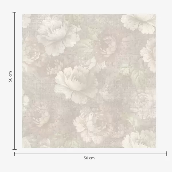 Tapete Verblasste Pfingstrosen auf Leinenstruktur in sanften Beigetönen Nr. a01018