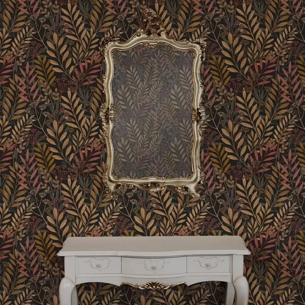 Tapete Dunkle Wiese mit stilisierten Blättern und Samenkapseln Nr. a01020