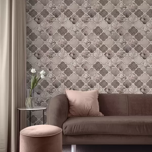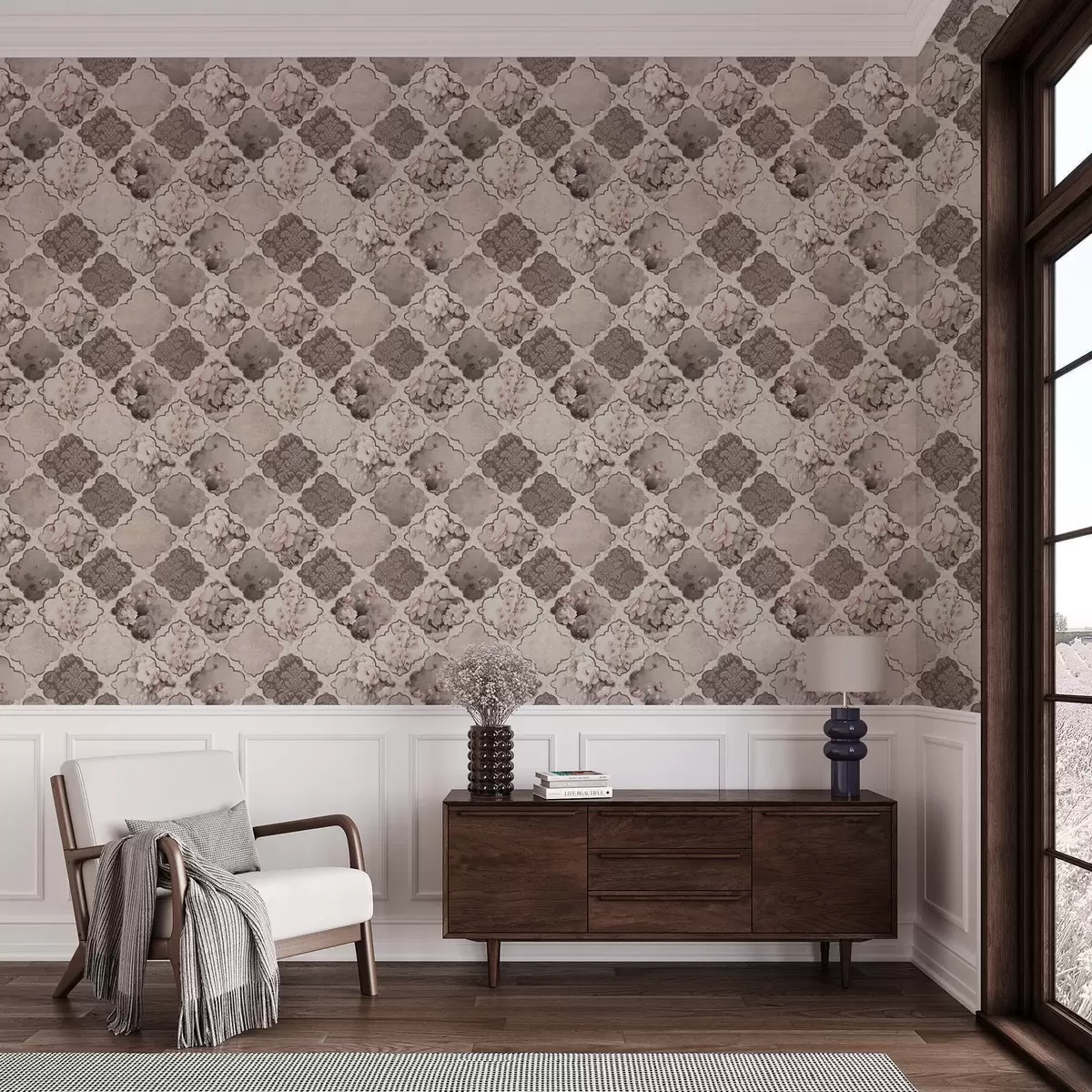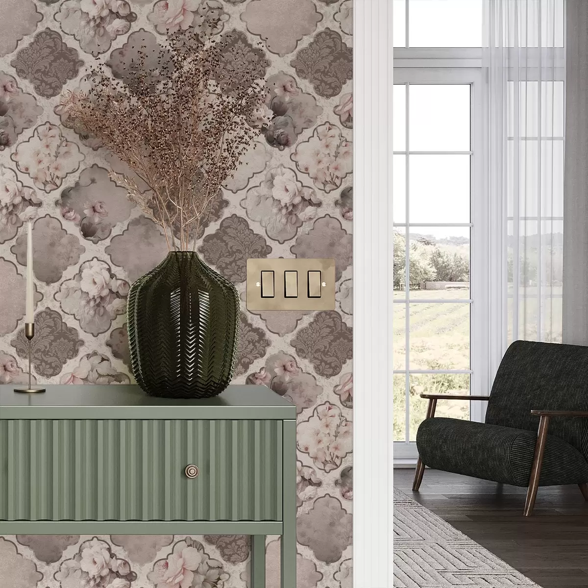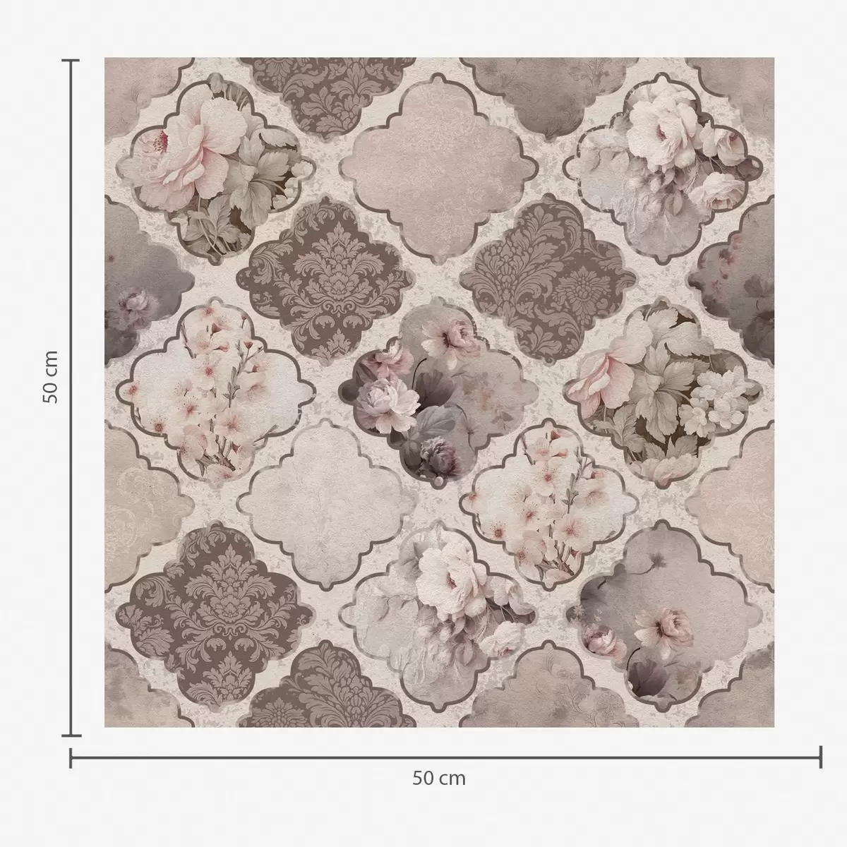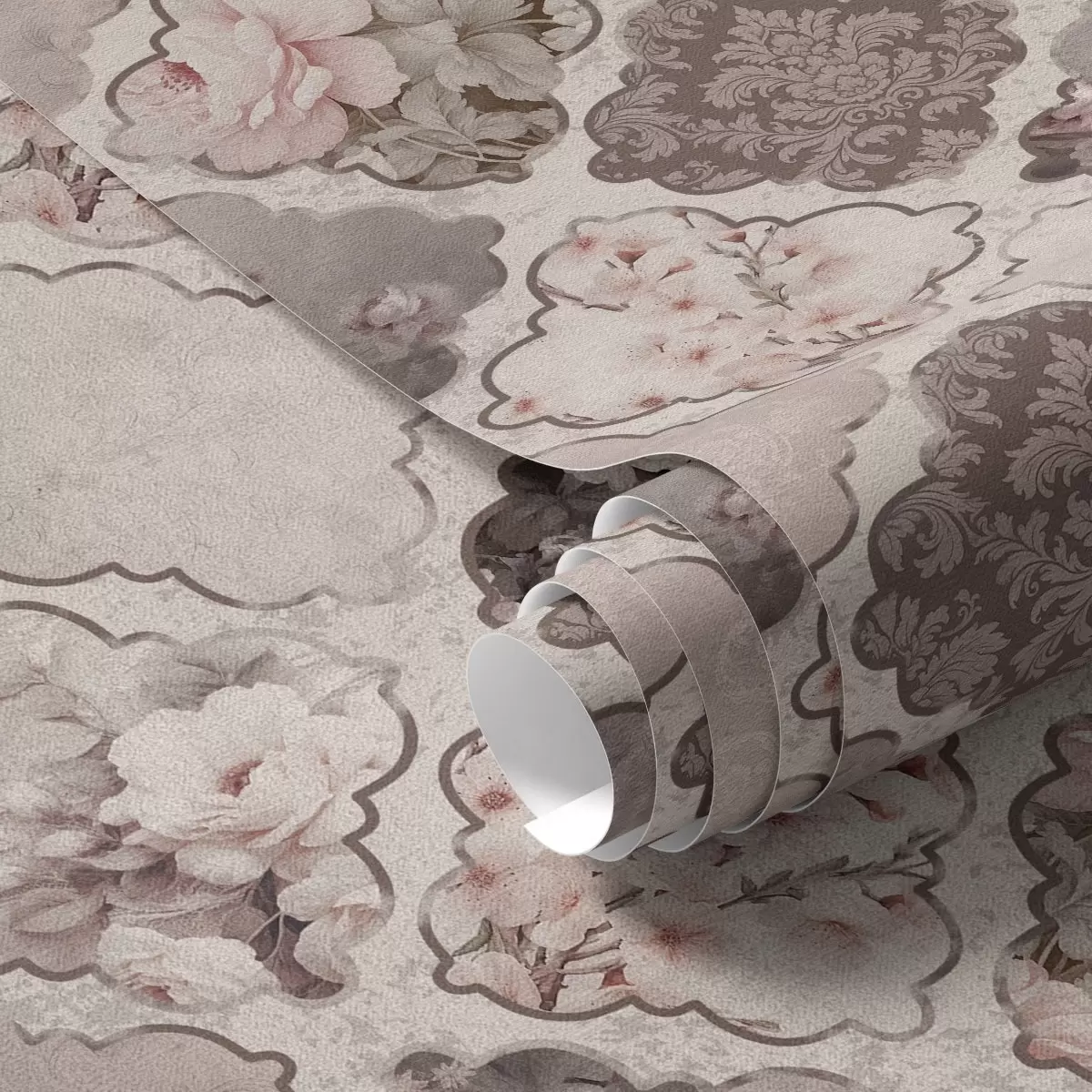 Tapete Romantisches Patchwork aus Blumenmedaillons in staubigen Farbtönen Nr. a01027