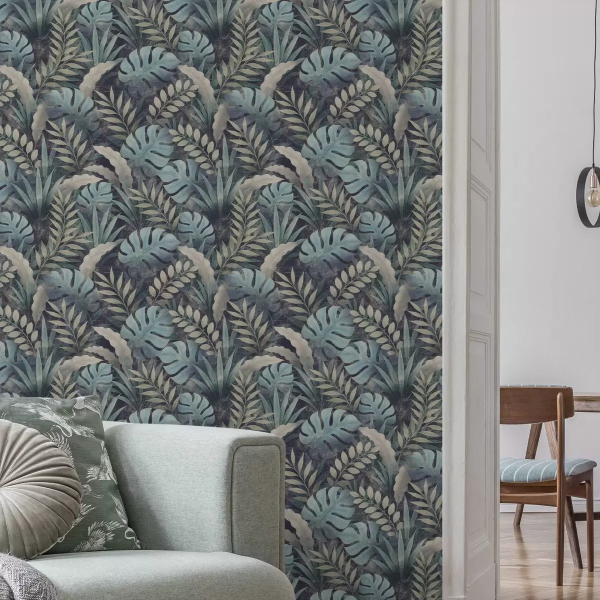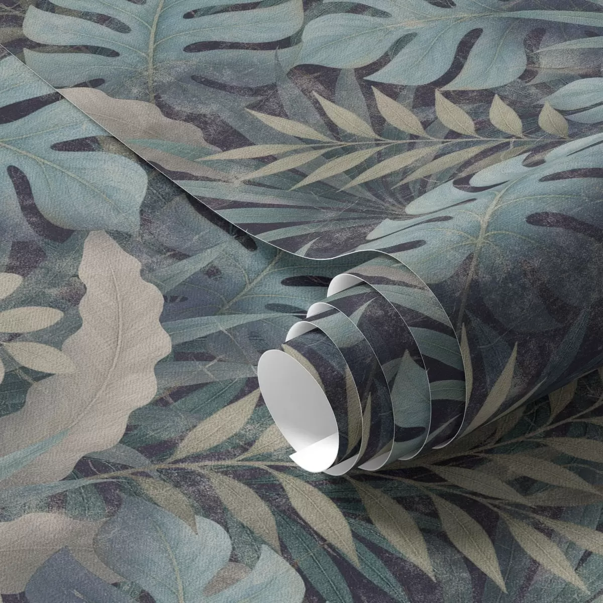 Tapete Tropisches Laub in kühlen Blaugrüntönen Nr. a01035
