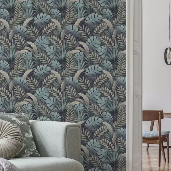 Tapete Tropisches Laub in kühlen Blaugrüntönen Nr. a01035