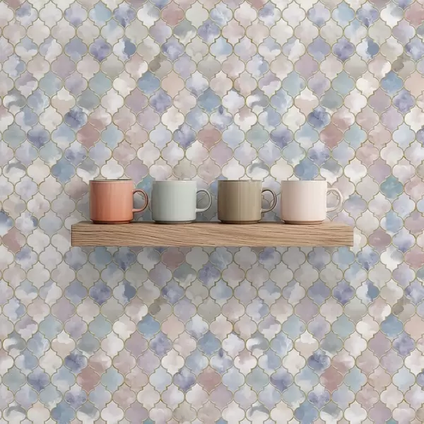 Tapete Pastellfarbenes Mosaik aus marokkanischen Fragmenten mit sanftem Schimmer Nr. a01039
