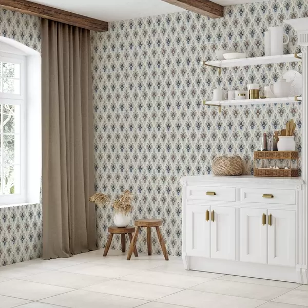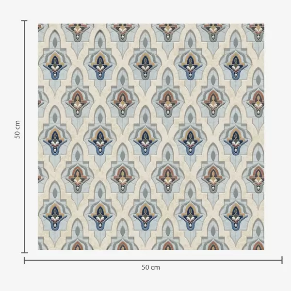 Tapete Orientalisches Muster aus kleinen Fliesen in einer Blau-Sand-Farbpalette Nr. a01044