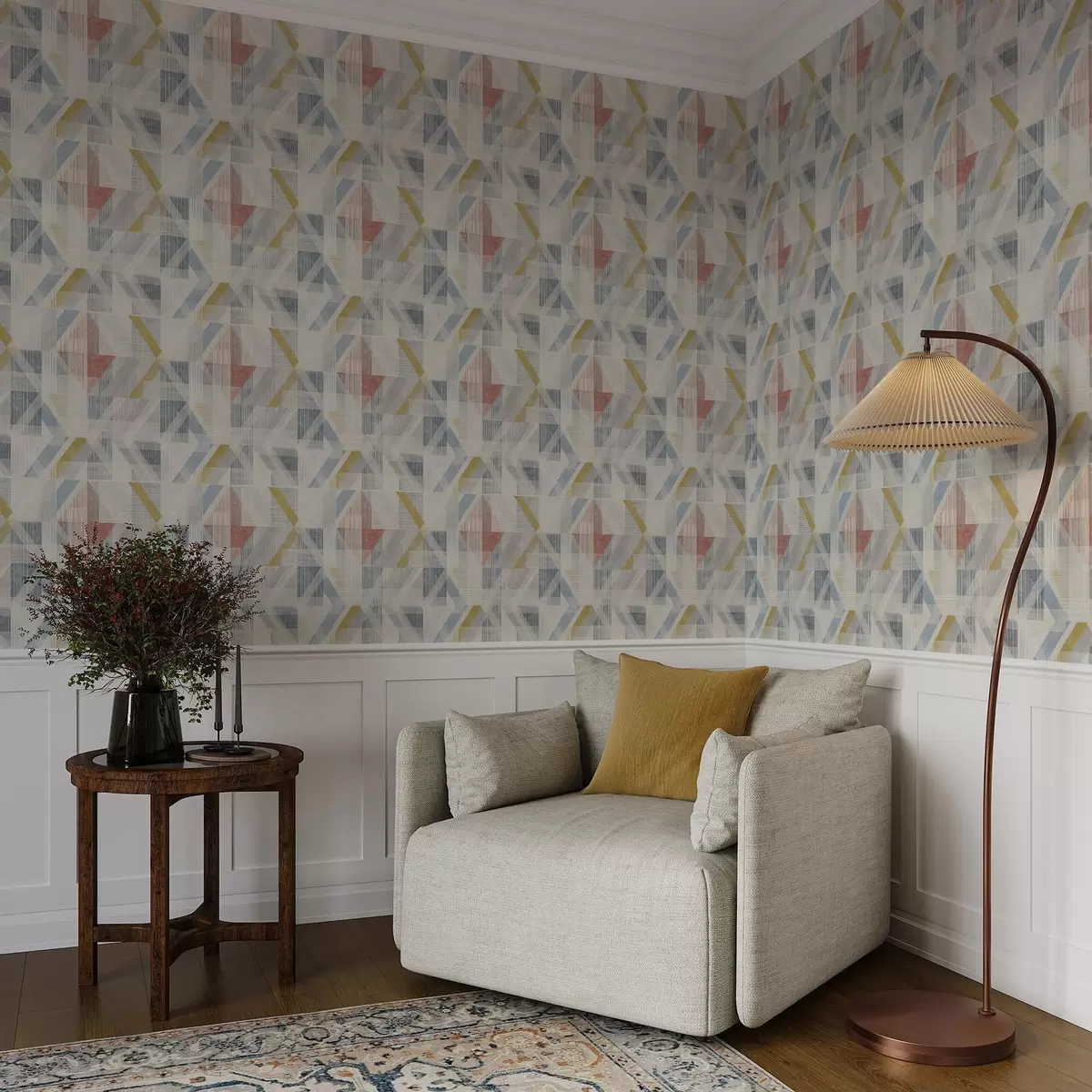 Tapete Geometrisches Design mit einem roten Diamanten in der Mitte Nr. a01055
