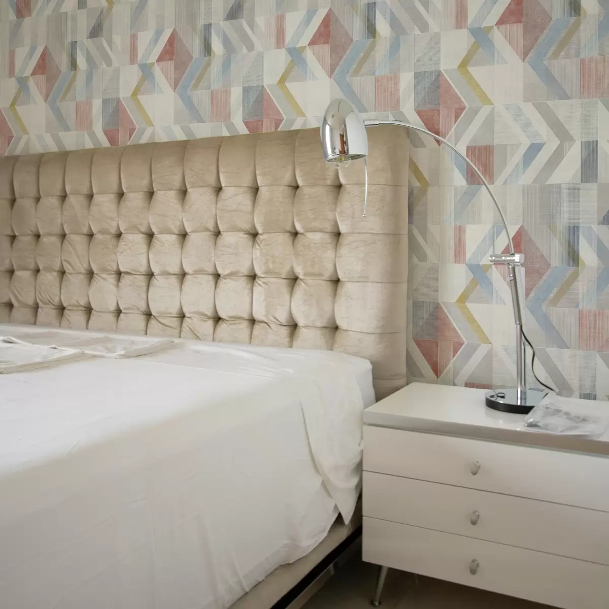 Tapete Geometrische Pfeile in Pastellrot- und Pastellblau-Tönen Nr. a01056