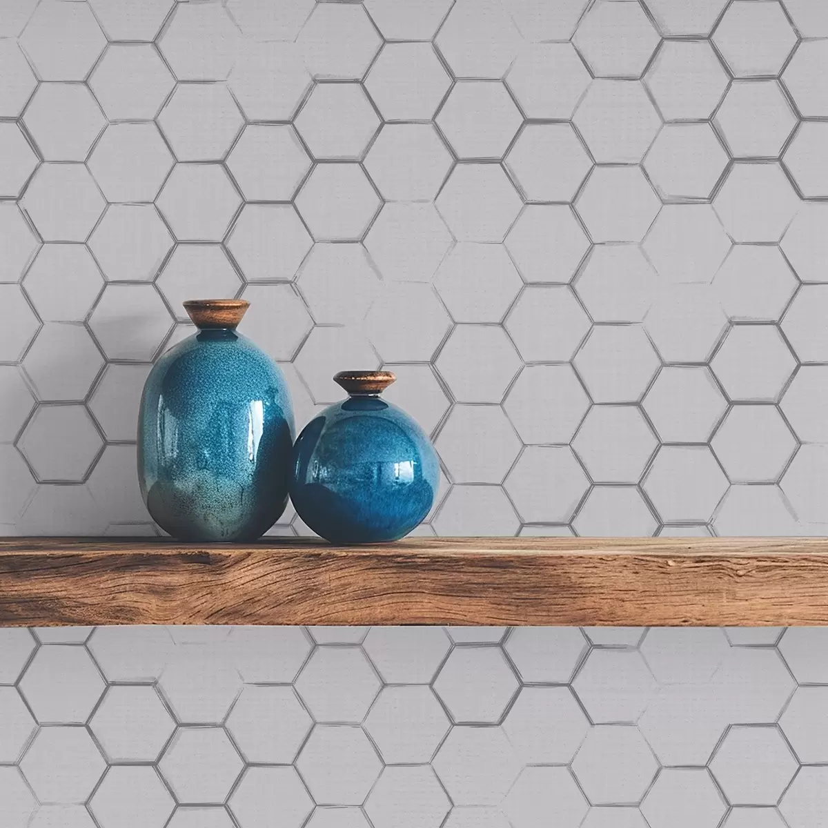 Tapete Feines sechseckiges Raster auf hellgrauem strukturiertem Hintergrund Nr. a01060