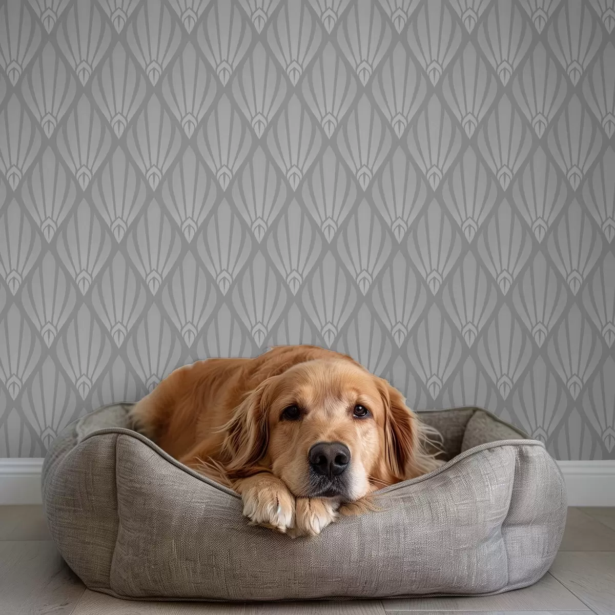 Tapete Graues Art Déco mit fächerförmigen Formen Nr. a01064
