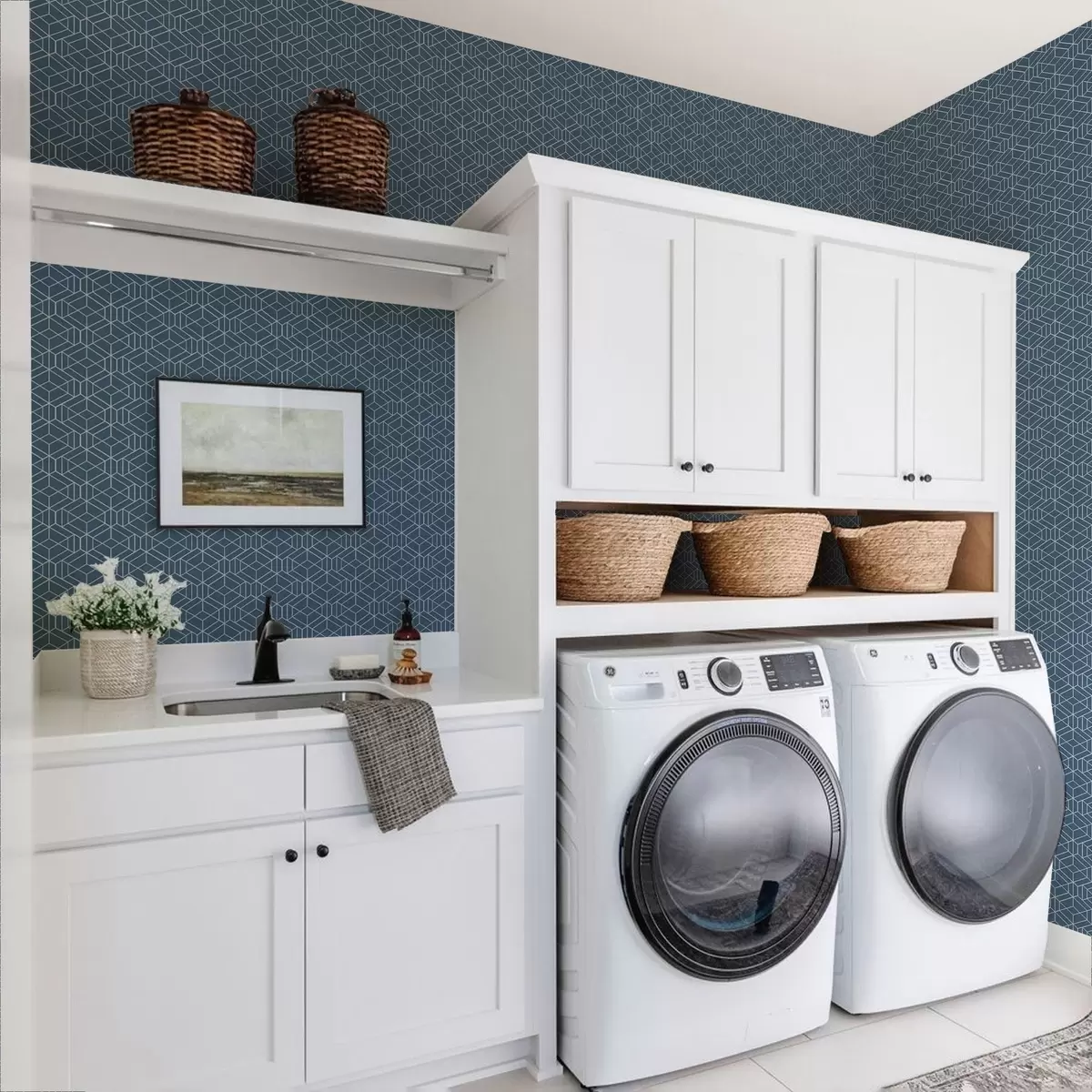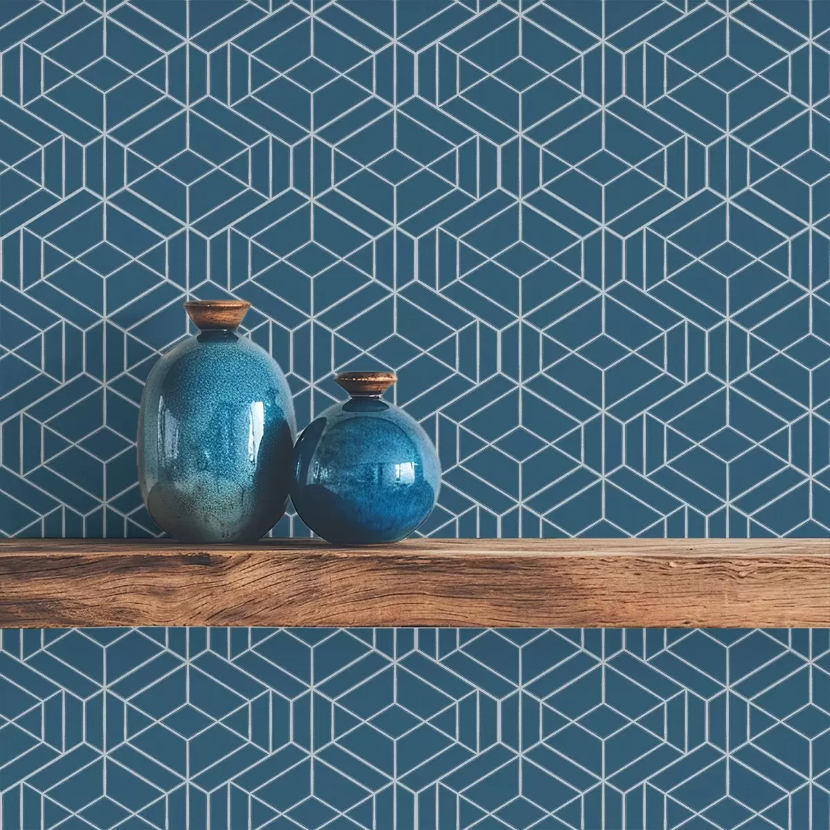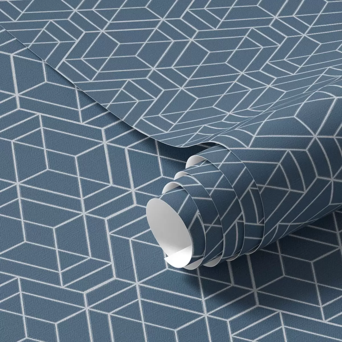 Tapete Blauer Hintergrund mit weißen linearen Würfeln in einem Raster Nr. a01067v1