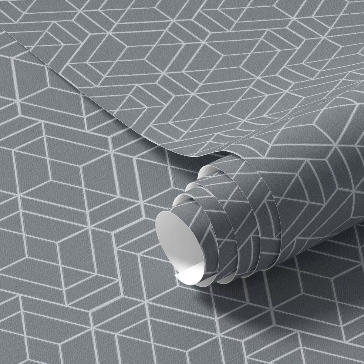Tapete Grauer Hintergrund mit weißen dreidimensionalen Würfeln in einem Raster Nr. a01067v2