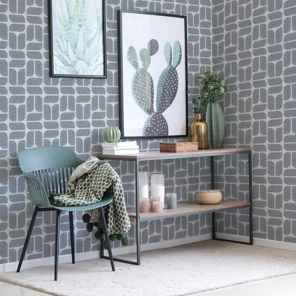 Tapete Graues Mosaik mit abwechselnd runden und rechteckigen Formen Nr. a01069