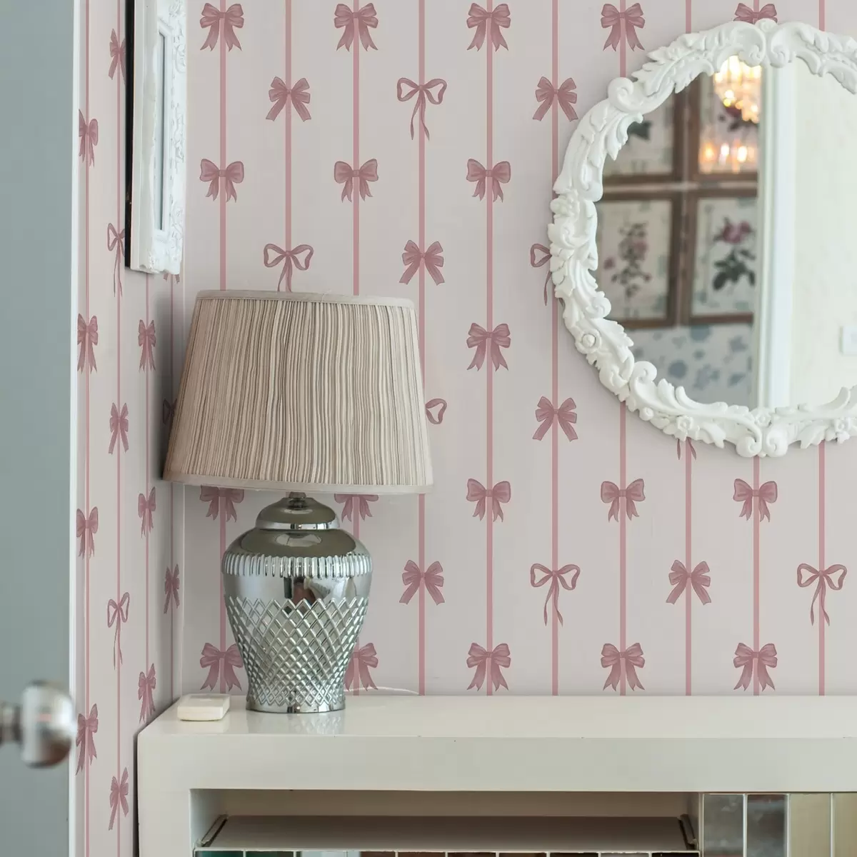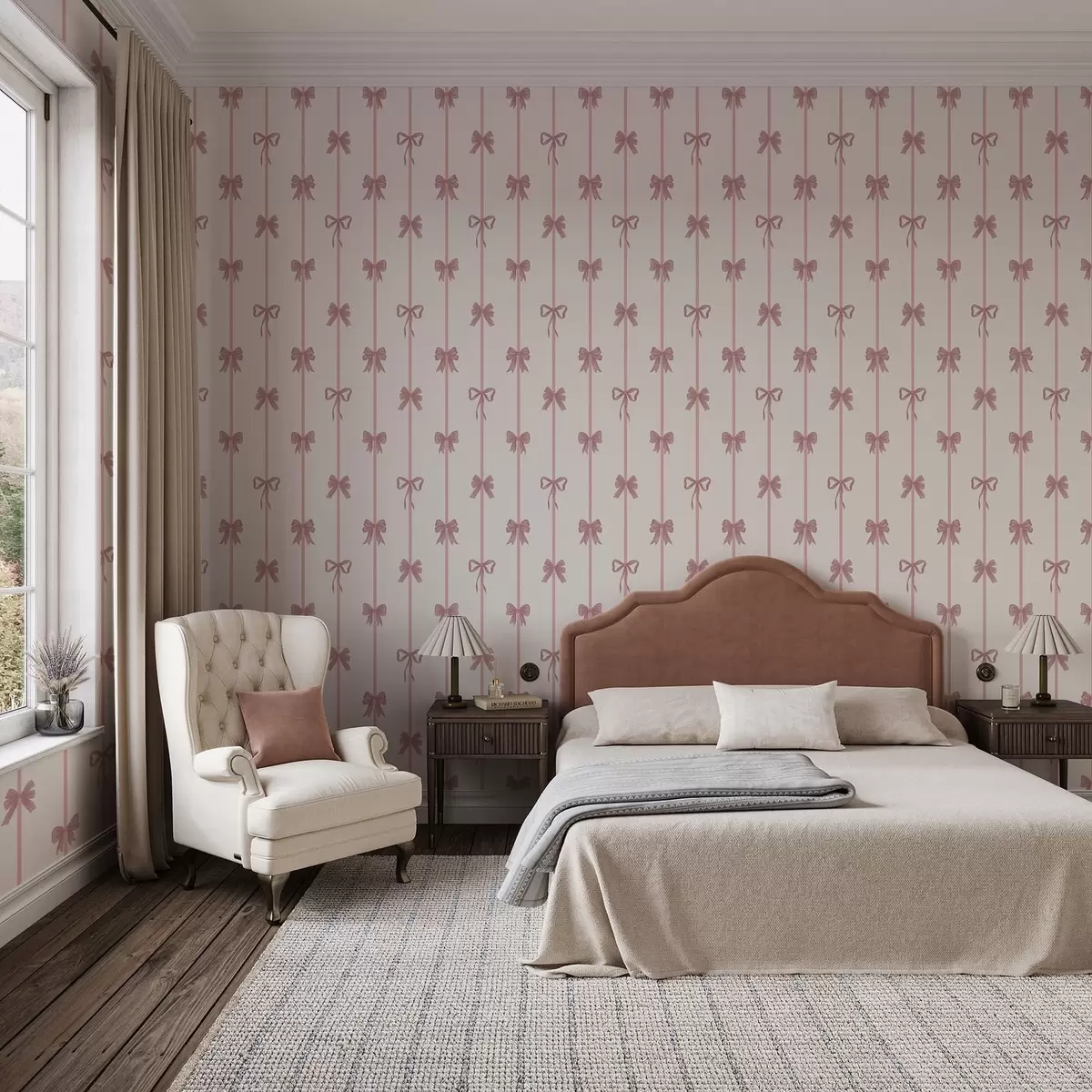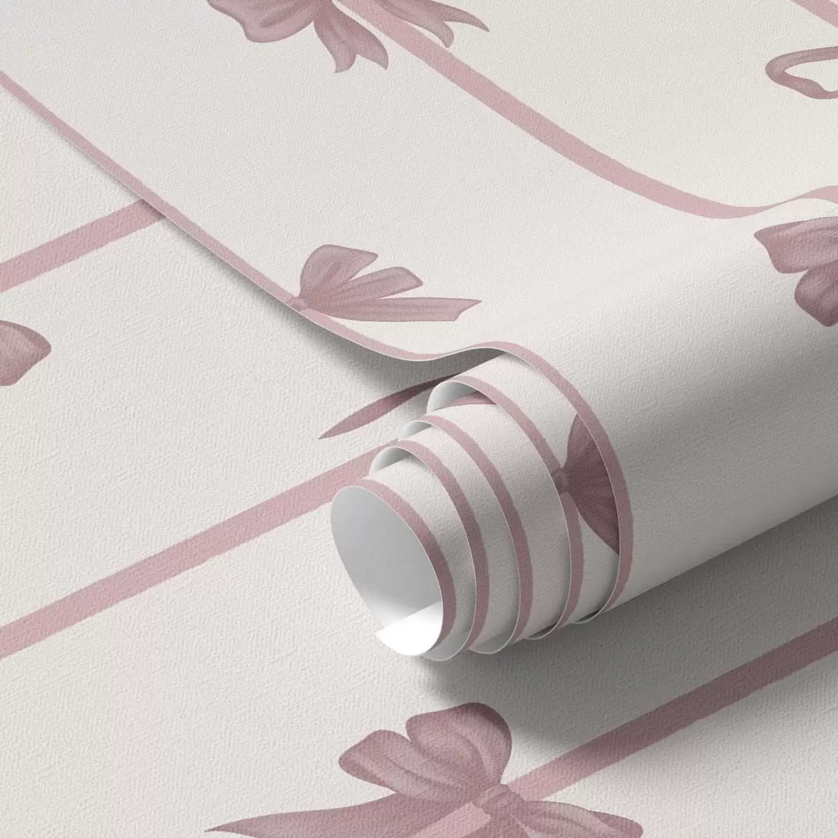 Tapete Rosa Schleifen mit Bändern auf hellem Hintergrund Nr. a01074