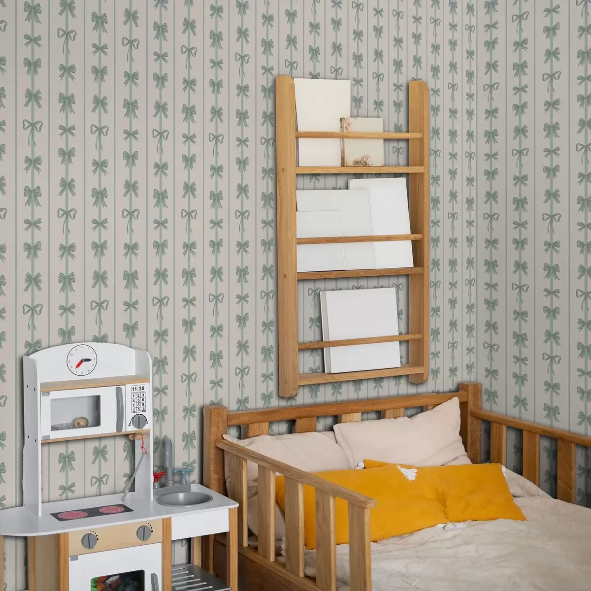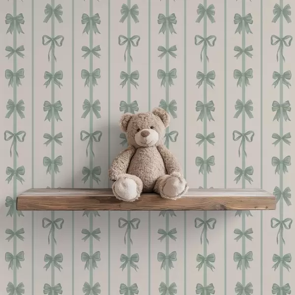 Tapete Grüne Schleifen in Streifen auf beigem Hintergrund Nr. a01075v1