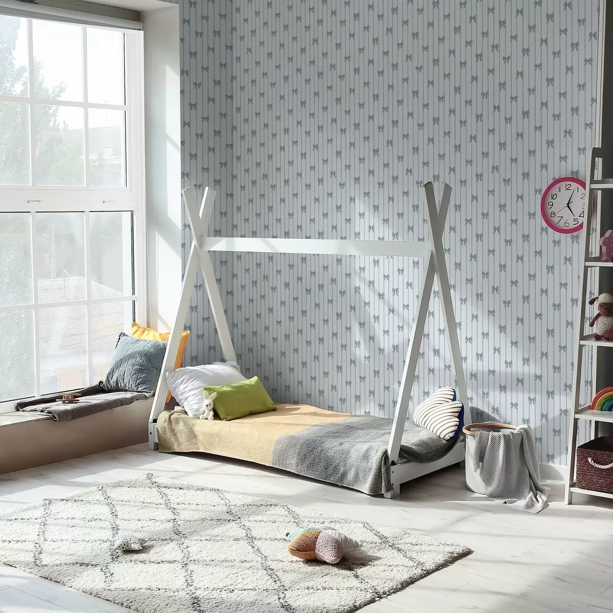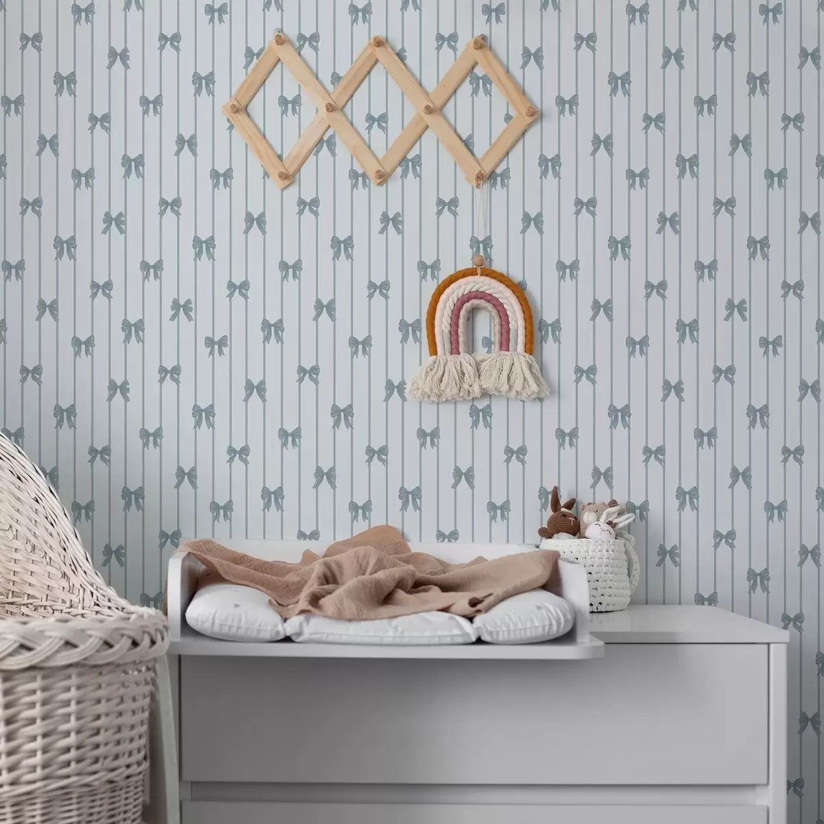 Tapete Helles Streifenmuster mit Bändern und Schleifen Nr. a01076v3