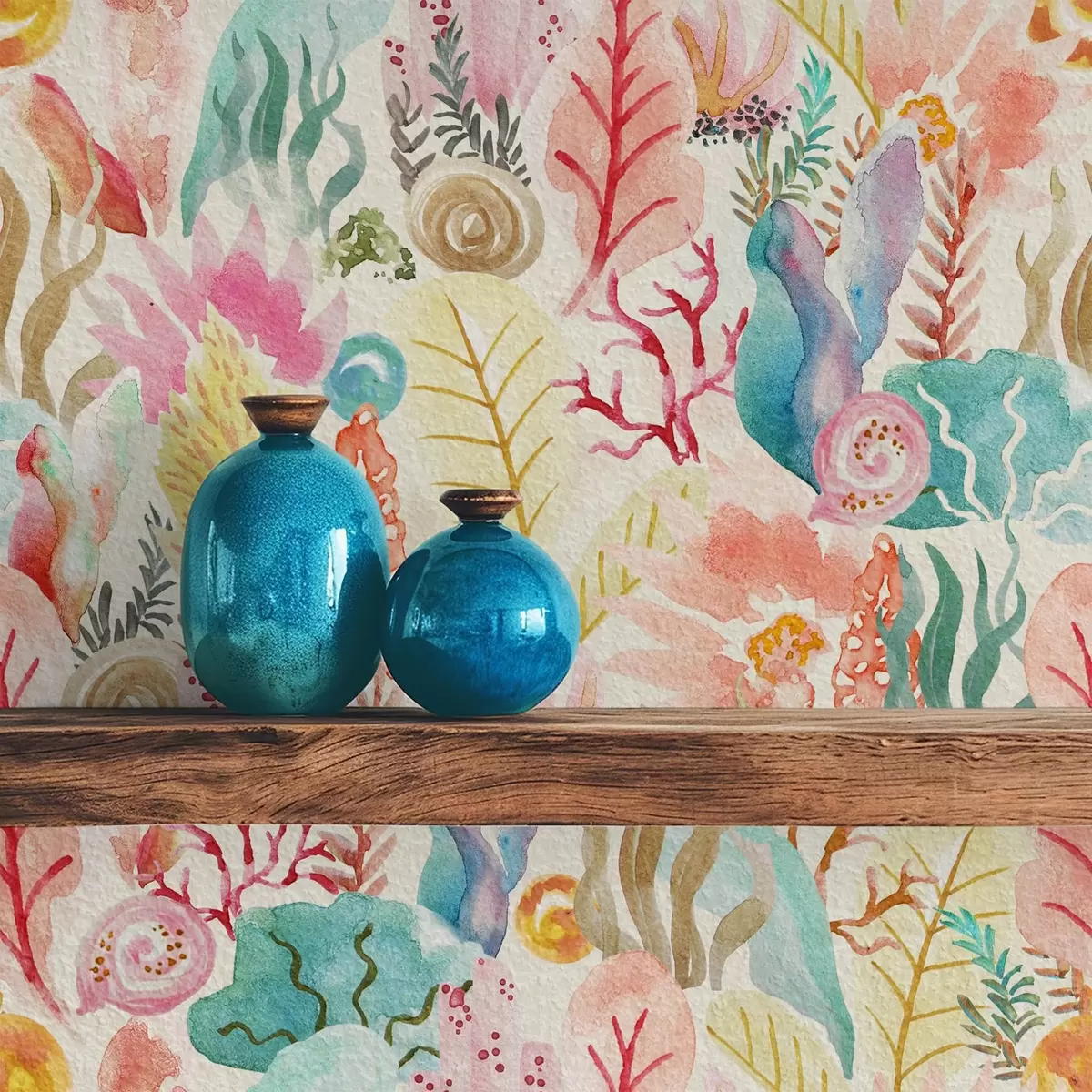 Tapete Aquarell Unterwassergarten mit Korallen und Seetang Nr. a01083