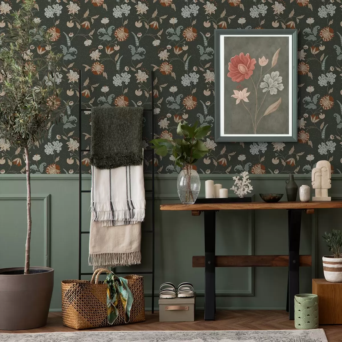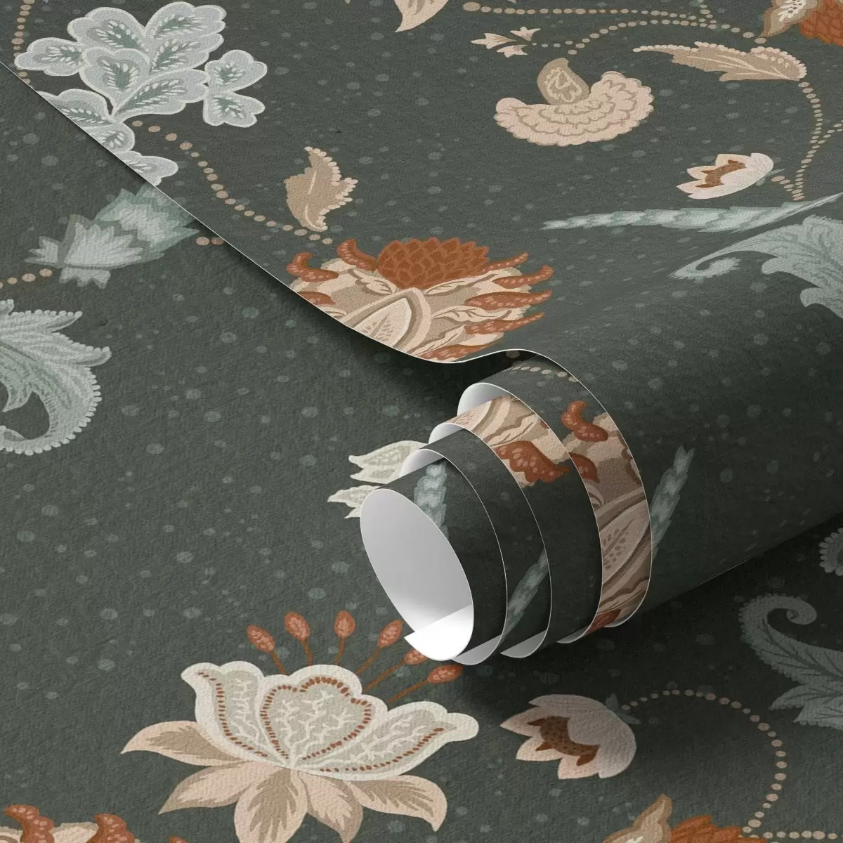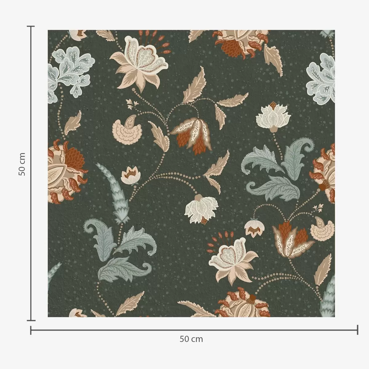 Tapete Dunkelgrüner Hintergrund mit dekorativen Blumen und Blättern Nr. a01086