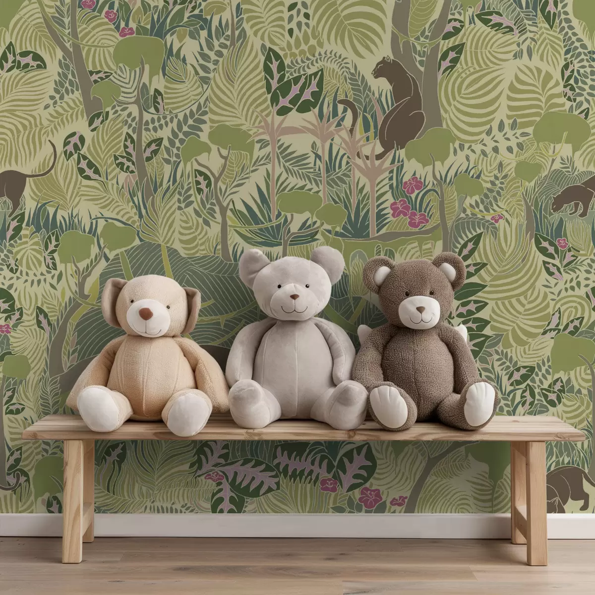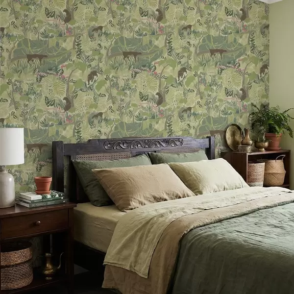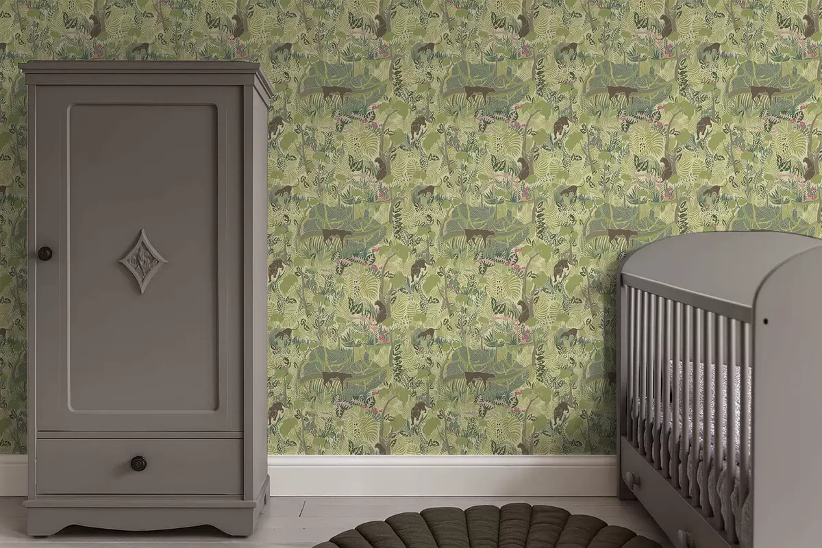 Tapete Waldszene mit Tieren und dichtem Laubwerk Nr. a01108