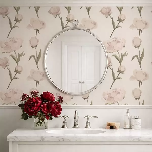 Tapete Zartrosa Pfingstrosen auf hellem Hintergrund a01114