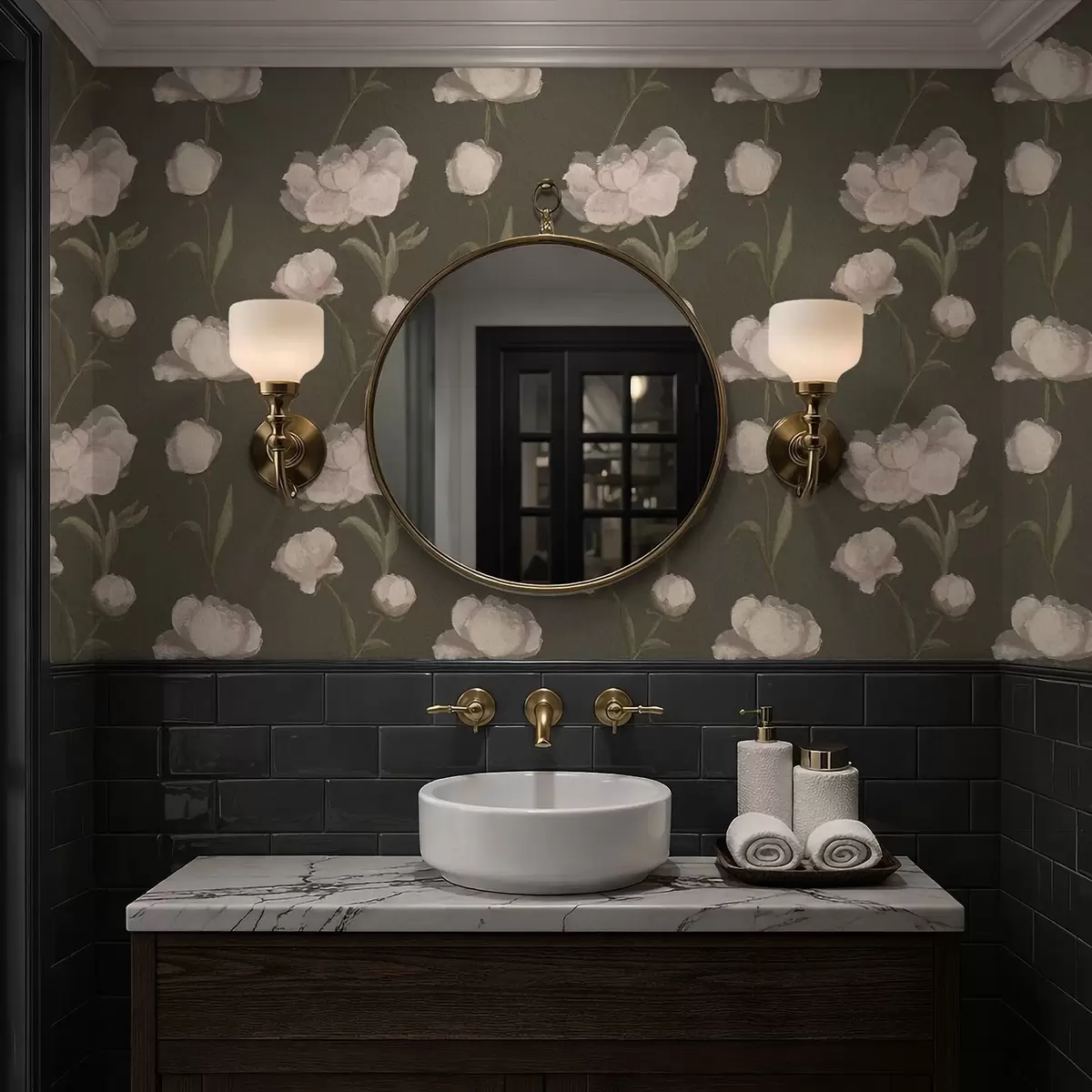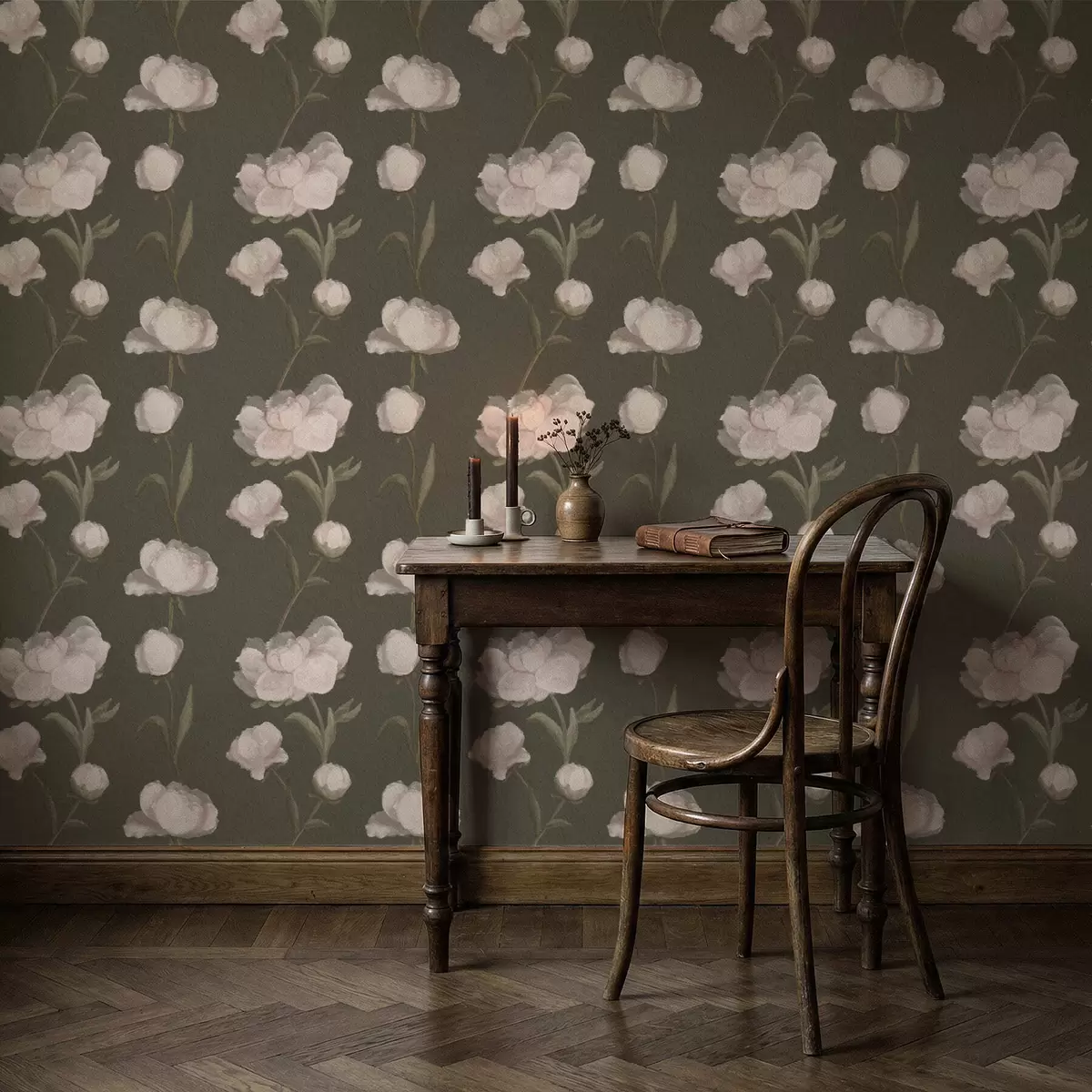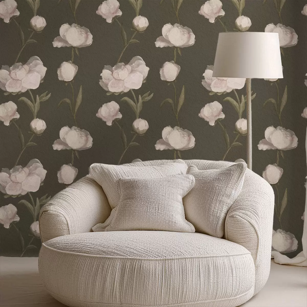 Tapete Zartrosa Pfingstrosen auf dunklem Hintergrund Nr. a01114v1