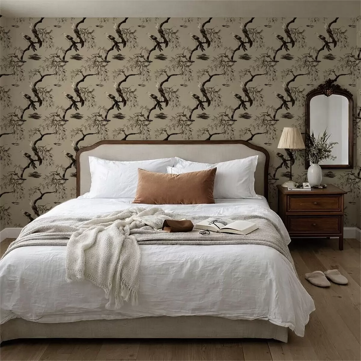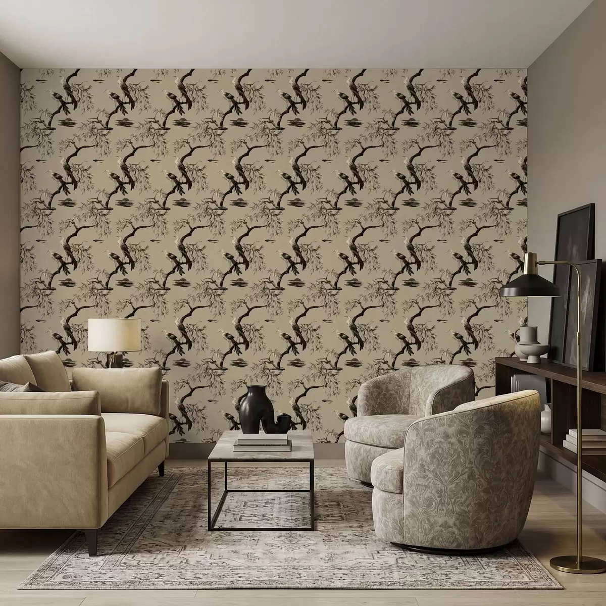 Tapete Vögel auf einem Ast in monochromen Farbtönen Nr. a01116v2
