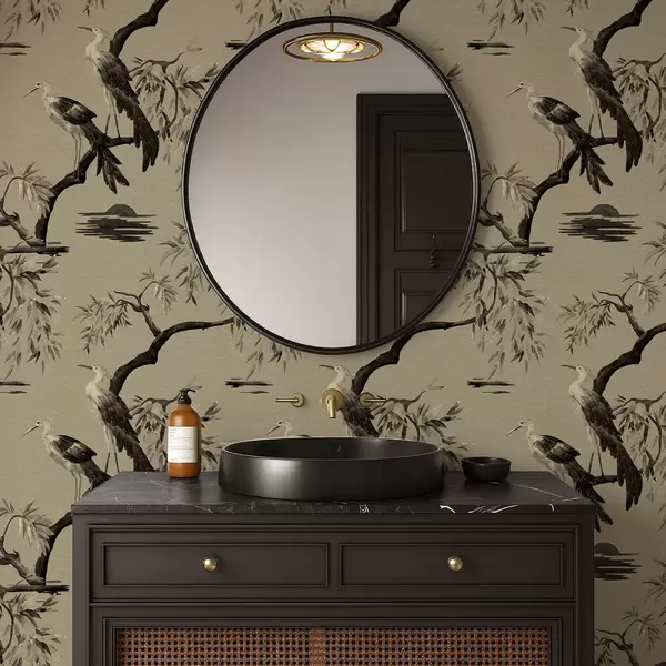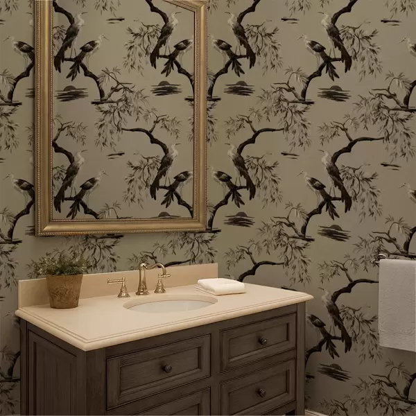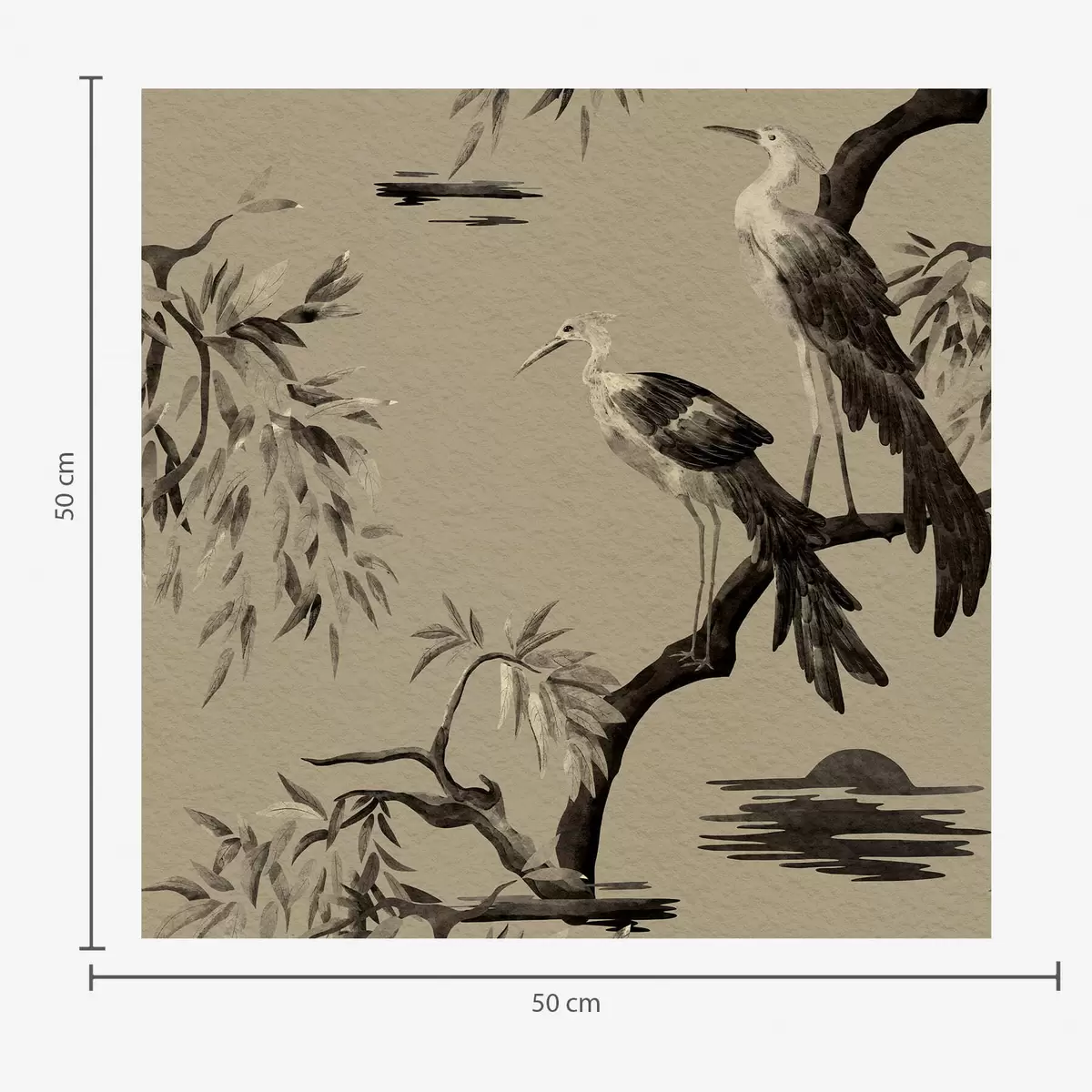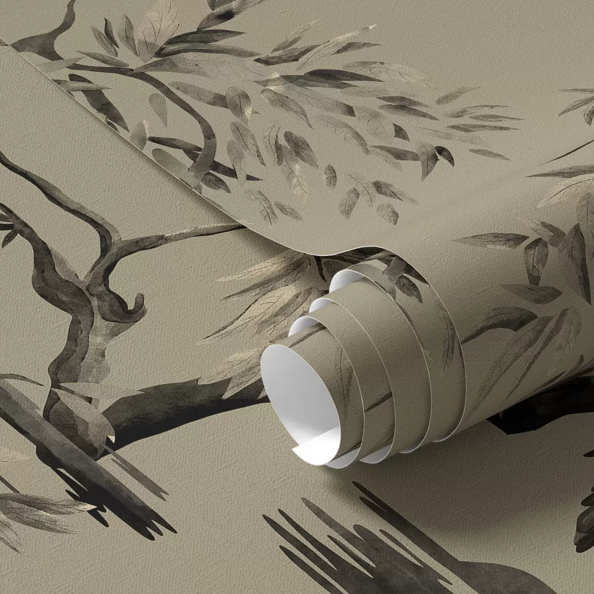 Tapete Vögel auf einem Ast in monochromen Farbtönen Nr. a01116v2