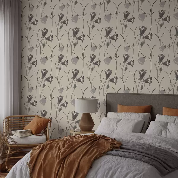 Tapete Graue Glockenblumen auf hellbeigem Hintergrund Nr. a01119