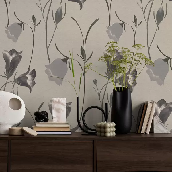 Tapete Graue Glockenblumen auf hellbeigem Hintergrund Nr. a01119