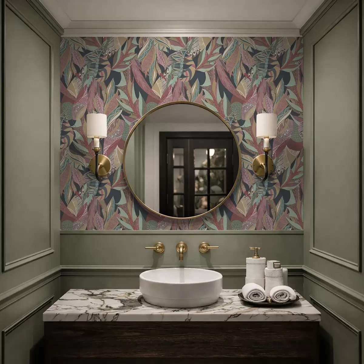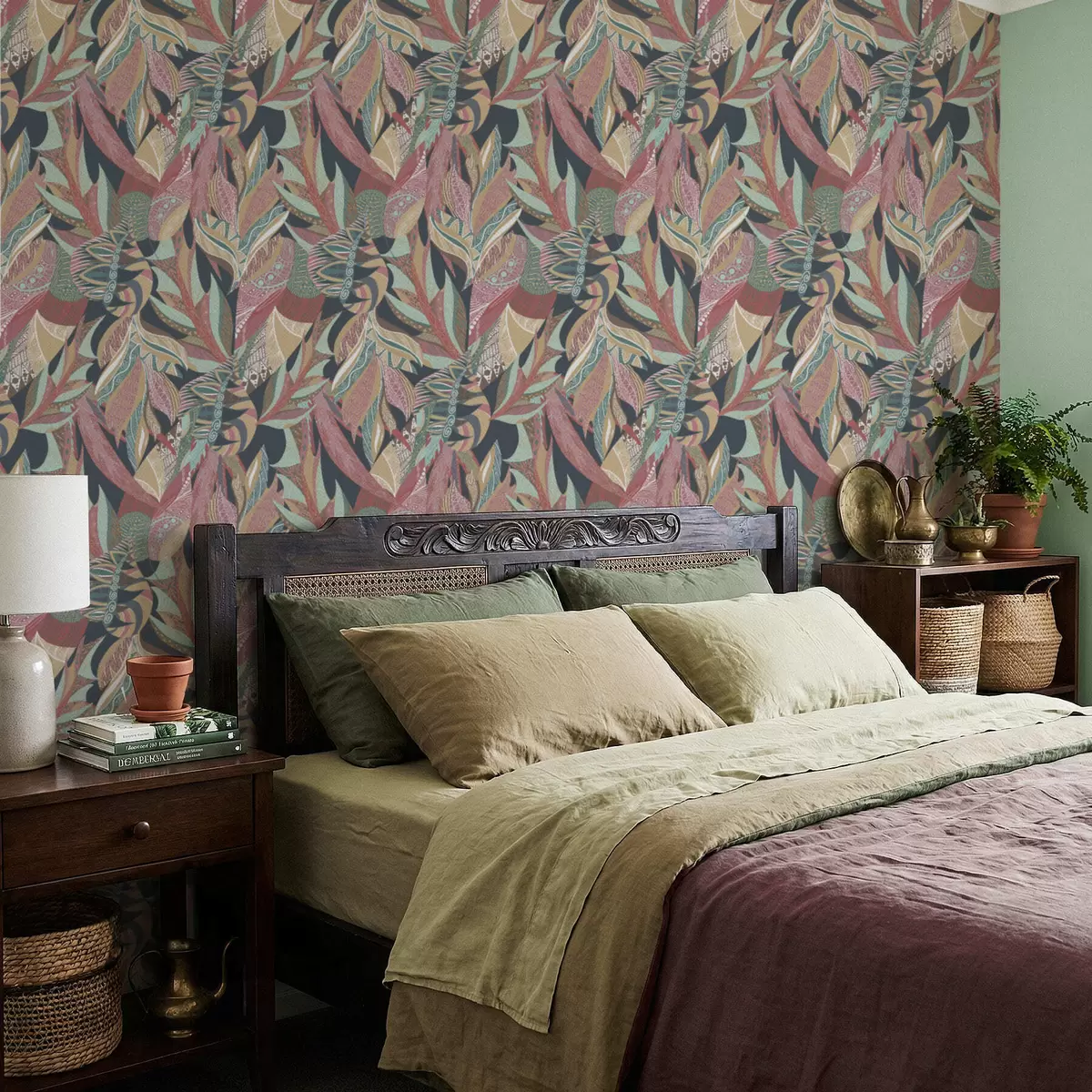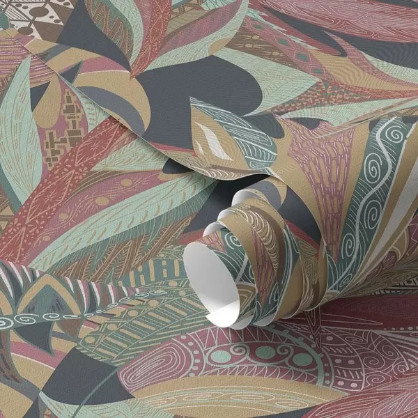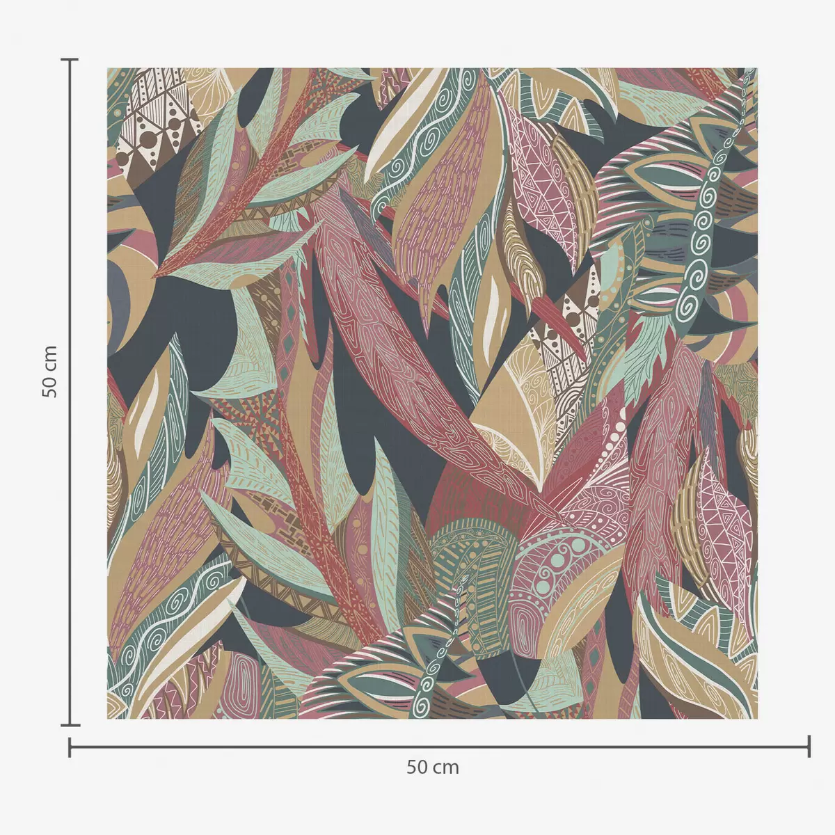 Tapete Bunte gemusterte Blätter auf dunklem Hintergrund Nr. a01120