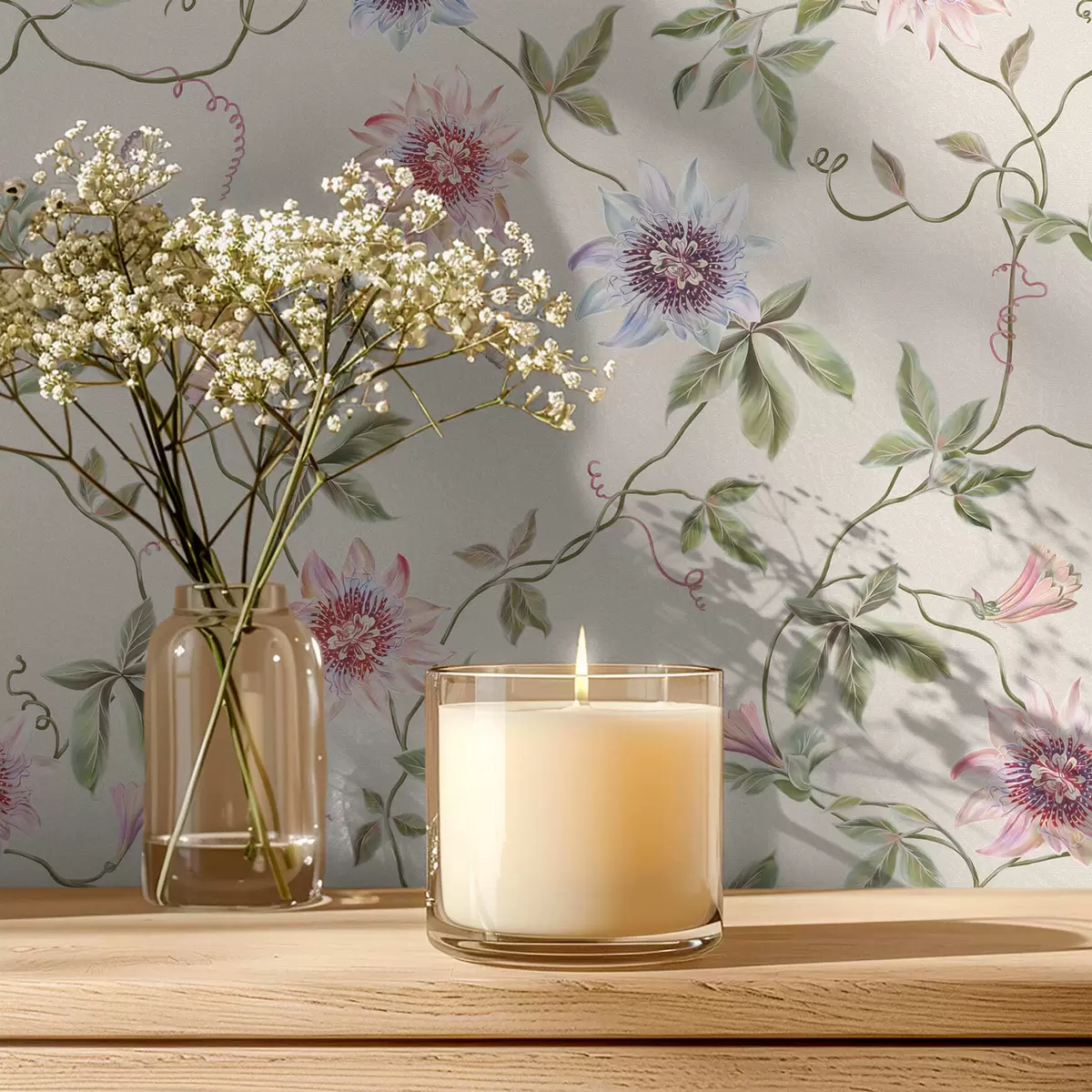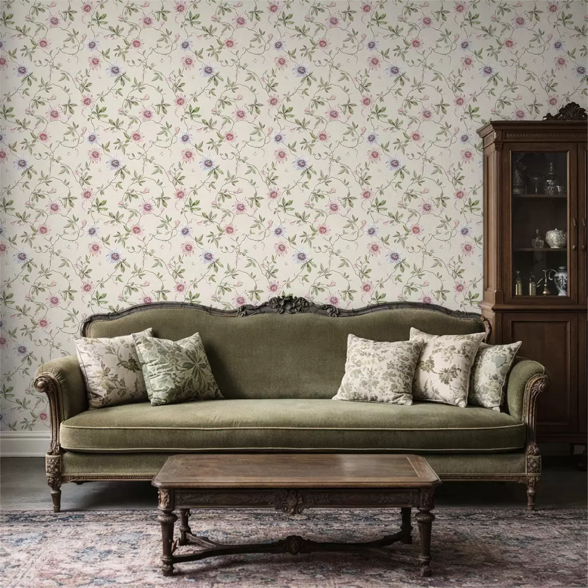 Tapete Muster mit exotischen Blumen und Ranken Nr. a01131