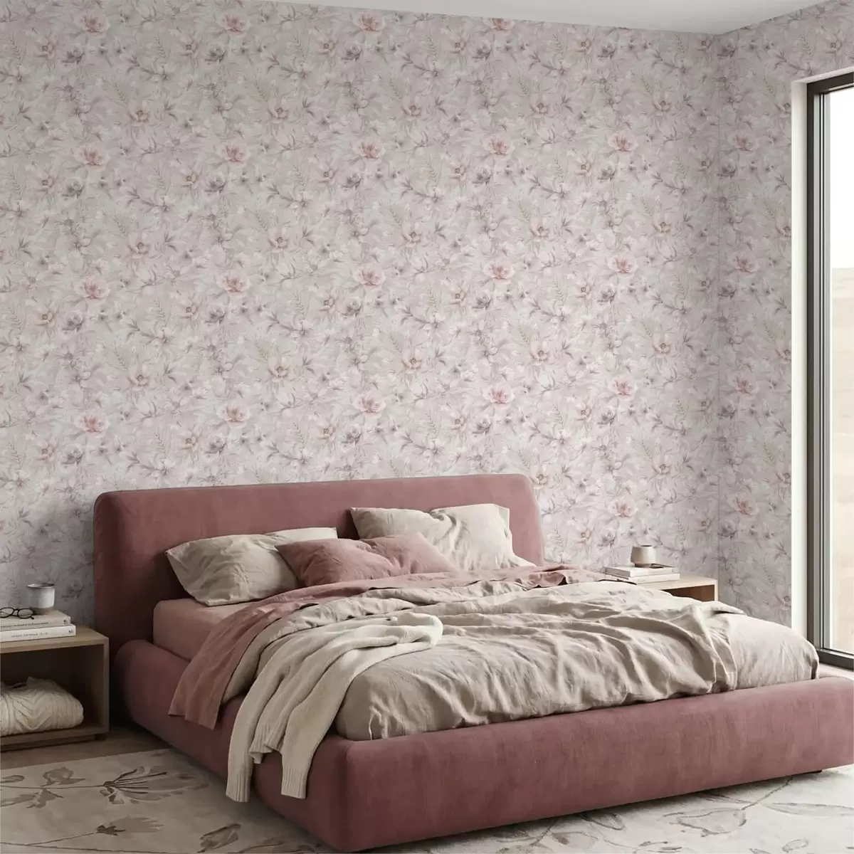 Tapete Leichtes Muster mit großen, zarten Blüten Nr. a01133