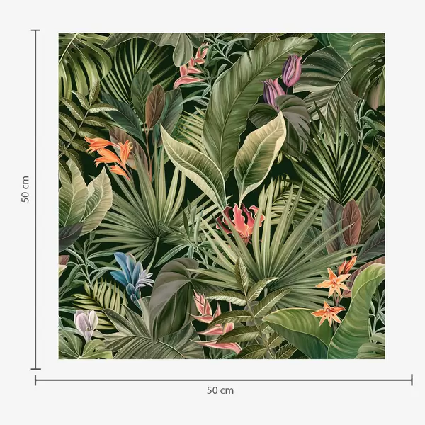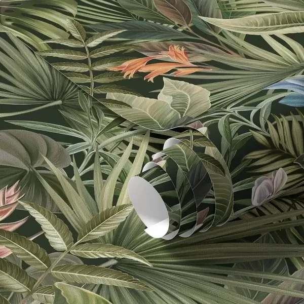 Tapete Tropische Blätter mit Blüten auf dunklem Hintergrund Nr. a01153