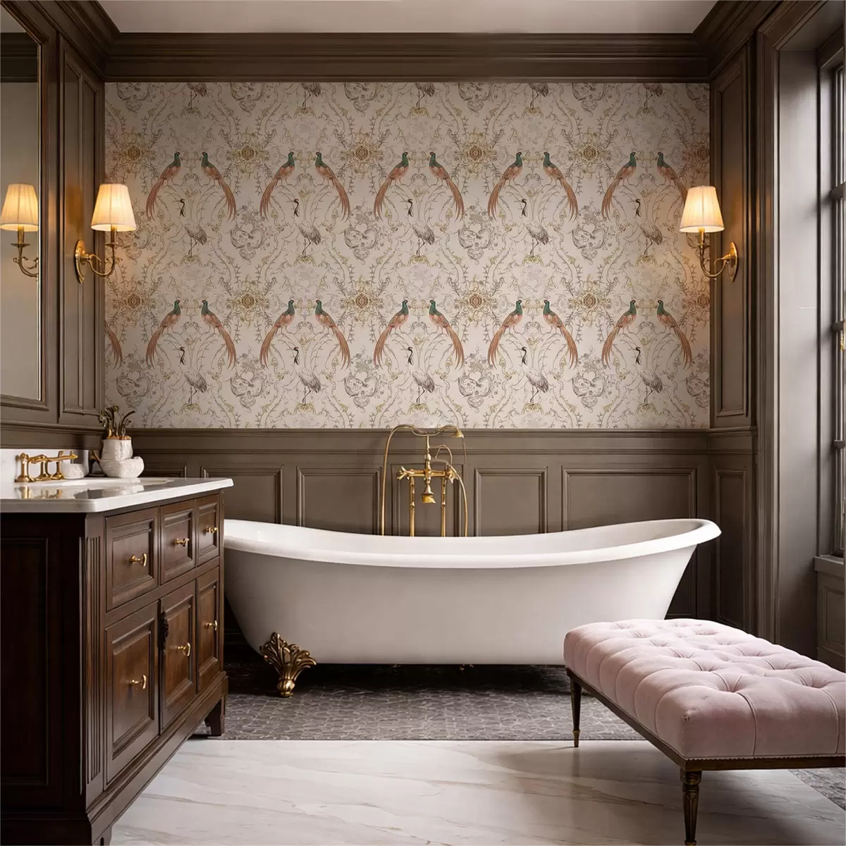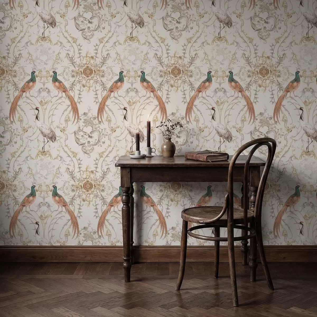 Tapete Ornamentmuster mit Vögeln und Motiven Nr. a01156