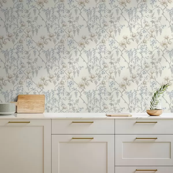 Tapete Zartes Blumenmuster mit Zweigen und Blüten Nr. a01159