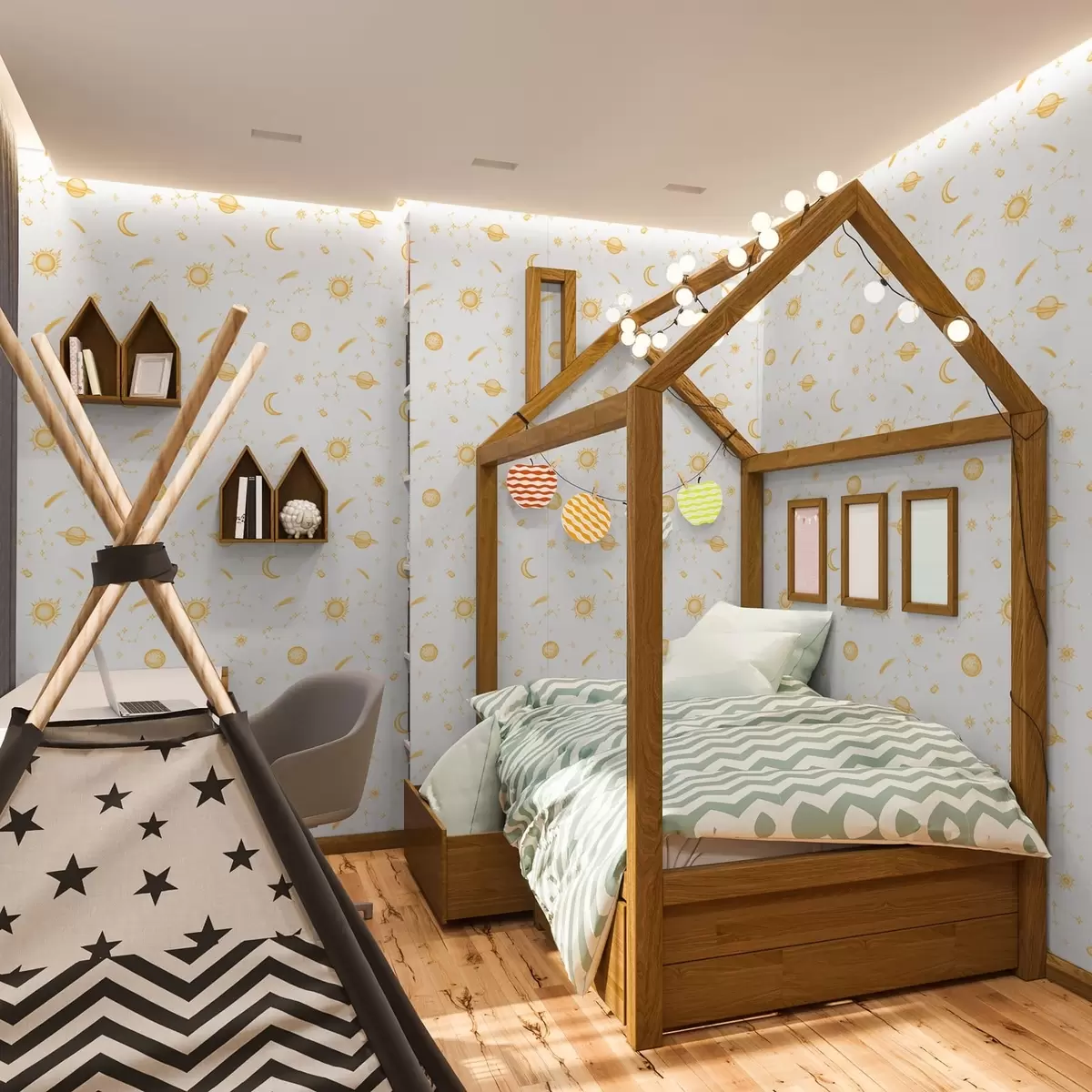 Tapete Himmelskörper und Sterne im sanften Stil Nr. a01163