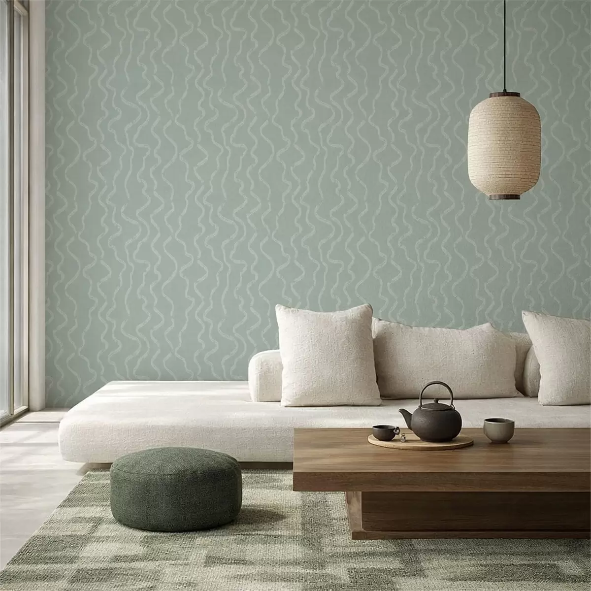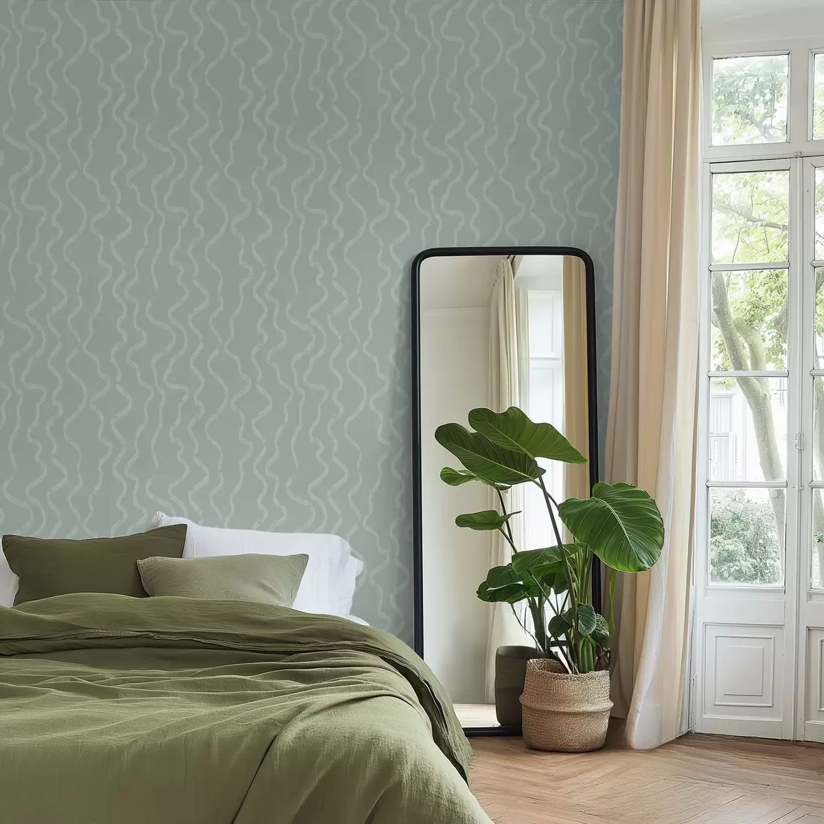 Tapete Wellenförmiges Lichtmuster auf grünem Hintergrund Nr. a01167v2