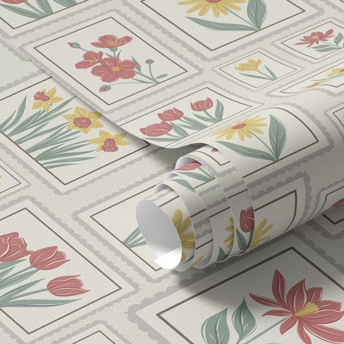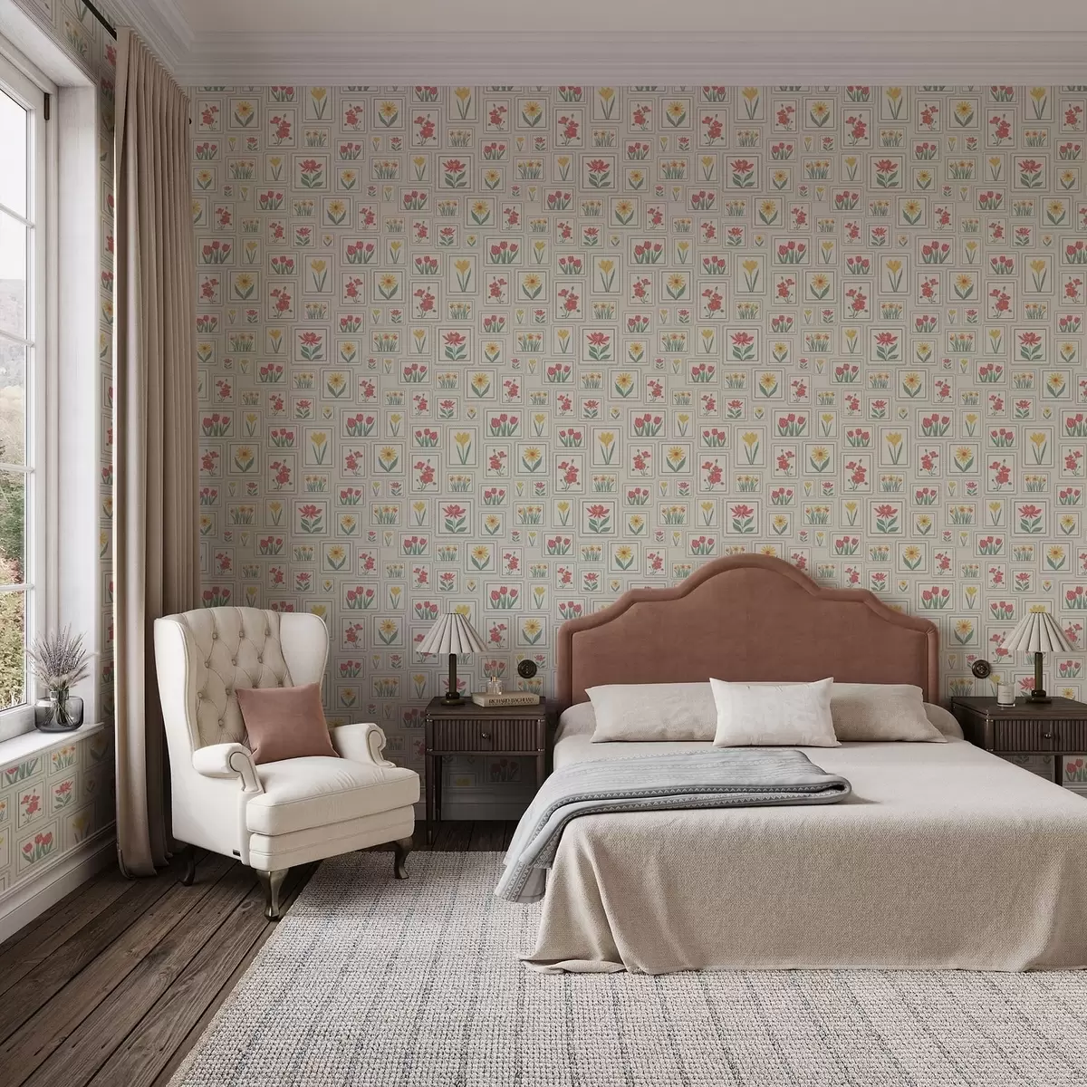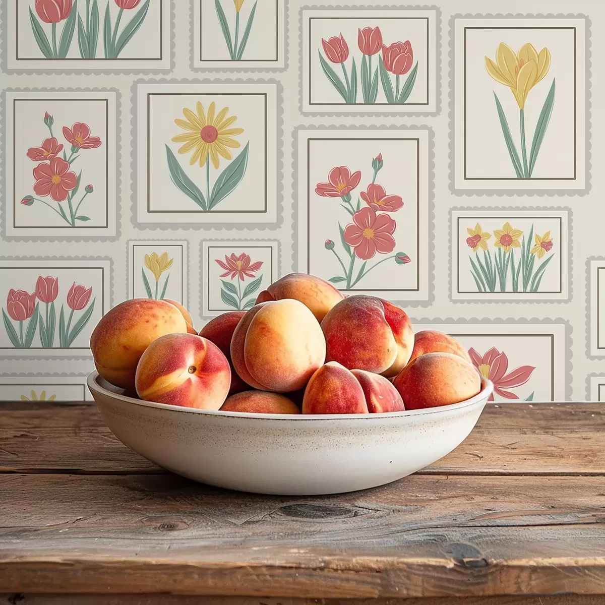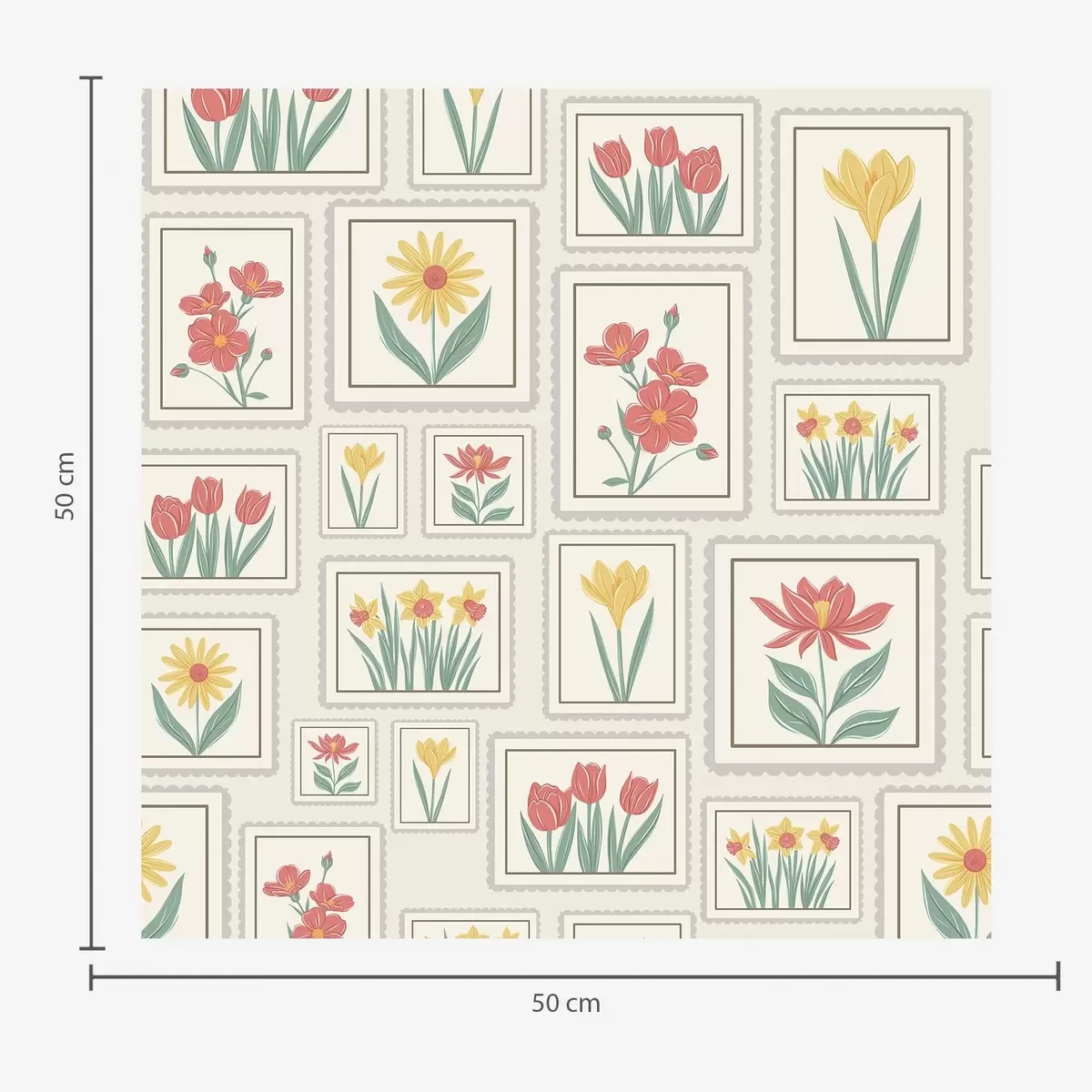 Tapete Gerahmte Blumenillustrationen auf hellem Hintergrund Nr. a01173v1